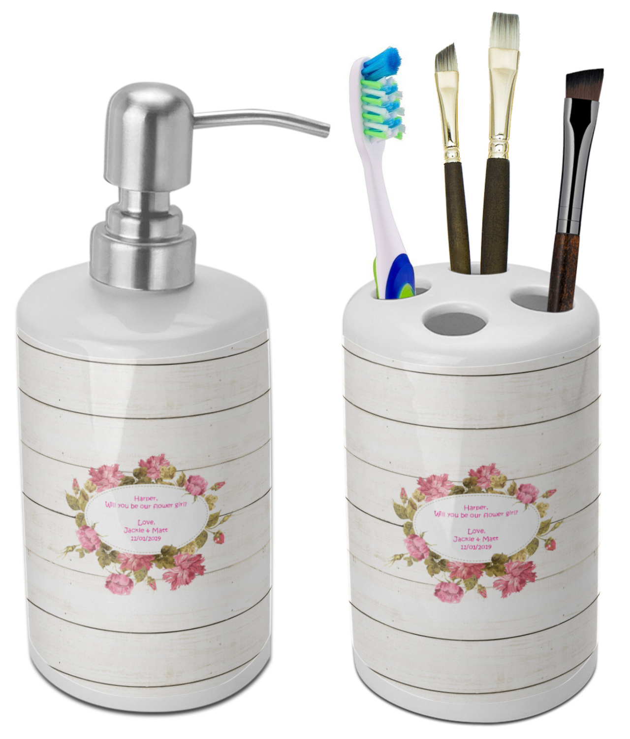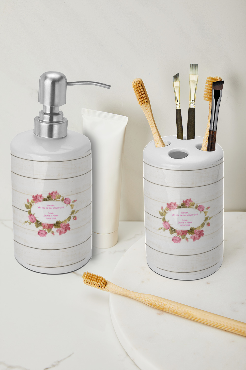 | Product Dimensions | Ceramic Soap / Lotion Dispenser (4" x 3" x 7") Ceramic Toothbrush Holder (3" x 3" x 4.5") |