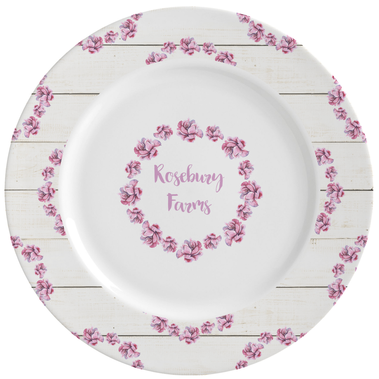 With this custom dinner plate, your have the option of personalizing the rim with an attractive pattern, and then displaying a name, graphic, or text in the center of the plate, against a white background. The exterior of this plate is also the same classic, white color. A glaze coats your plate, making your vividly colored design seem even more vibrant.