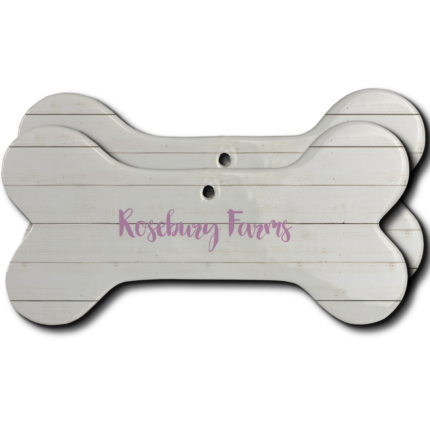 Our dog Christmas ornaments are a ceramic material with a bone-shaped structure hung horizontally. We offer two printing styles to personalize your furry friend's ornament! Choose a one-sided printing, perfect for wall decor, memorial accessory, or doghouse nameplate! Create a double-sided ornament perfect for adorning the Christmas tree. Each dog bone ornament is approximately 4.75" x 2.25" and is printed here in the USA.