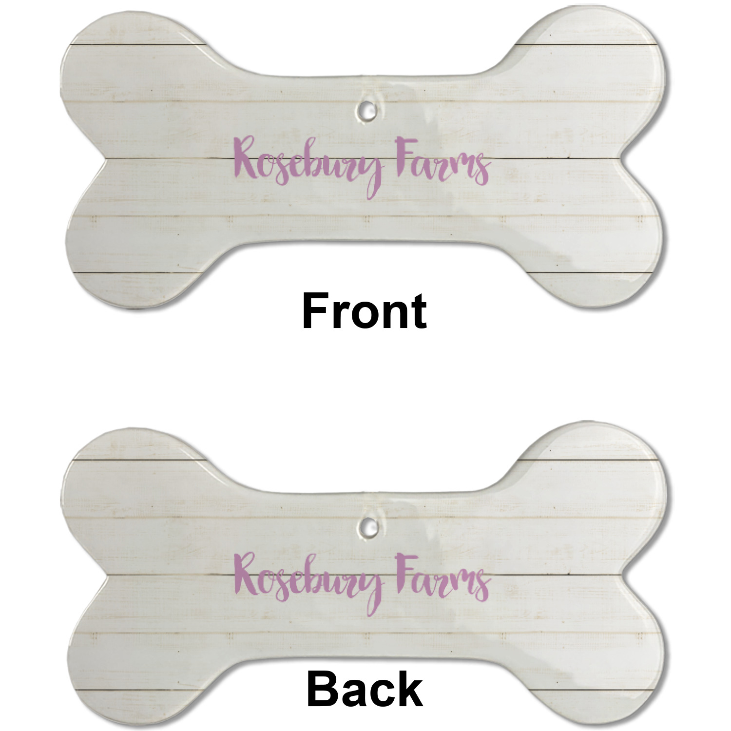 Our dog Christmas ornaments are a ceramic material with a bone-shaped structure hung horizontally. We offer two printing styles to personalize your furry friend's ornament! Choose a one-sided printing, perfect for wall decor, memorial accessory, or doghouse nameplate! Create a double-sided ornament perfect for adorning the Christmas tree. Each dog bone ornament is approximately 4.75" x 2.25" and is printed here in the USA.