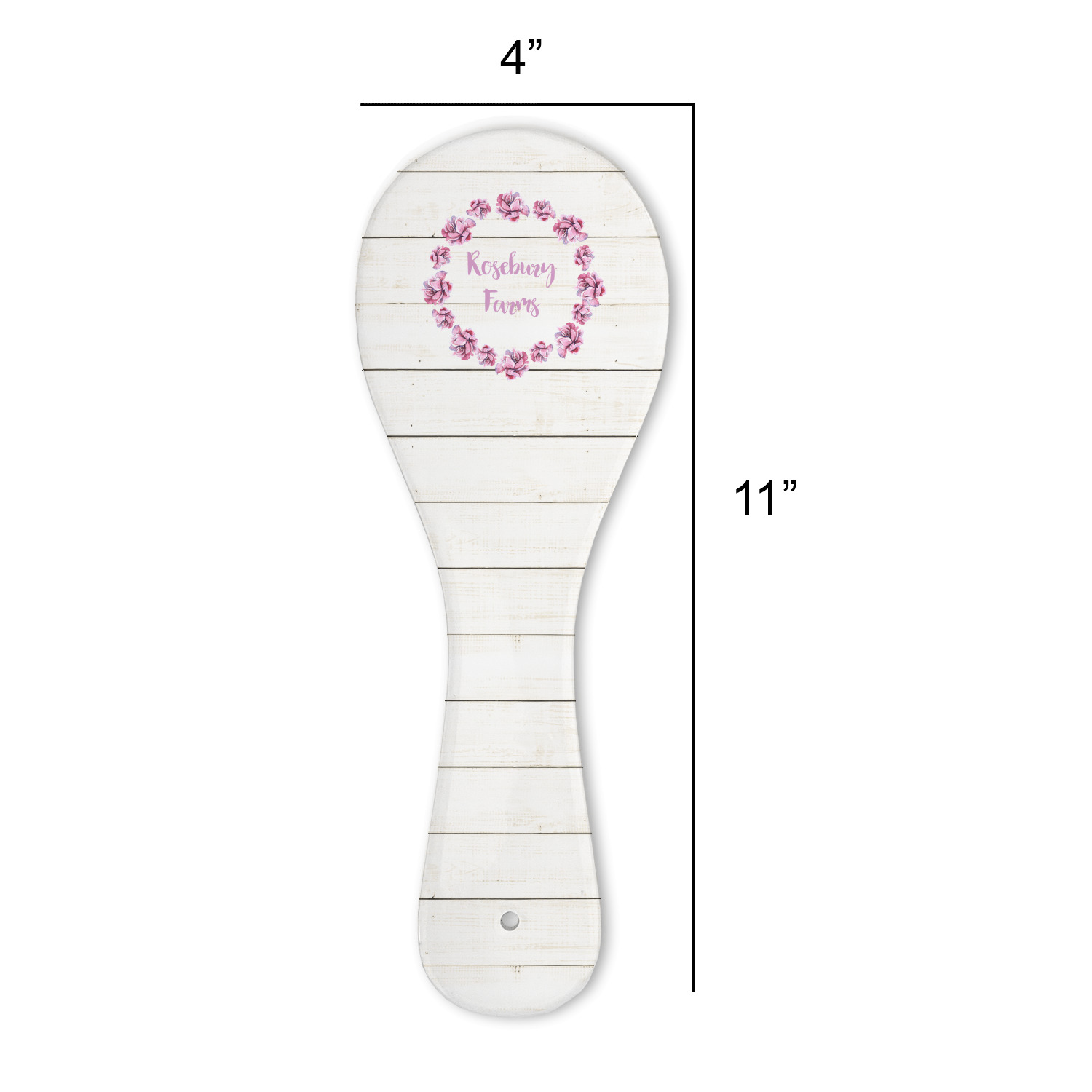 Made from a durable ceramic with a raised foot backer, these spoon rests are 11" long, 4" wide at the spoon section - 2.25" wide at the handle, and stand 0.375" tall. The spoon rest end has a slightly dished out area to ensure any items spilled on it do not run off. On the handle there is a hole in case you want to use it as a decoration in your kitchen it is easy to place on the wall.
