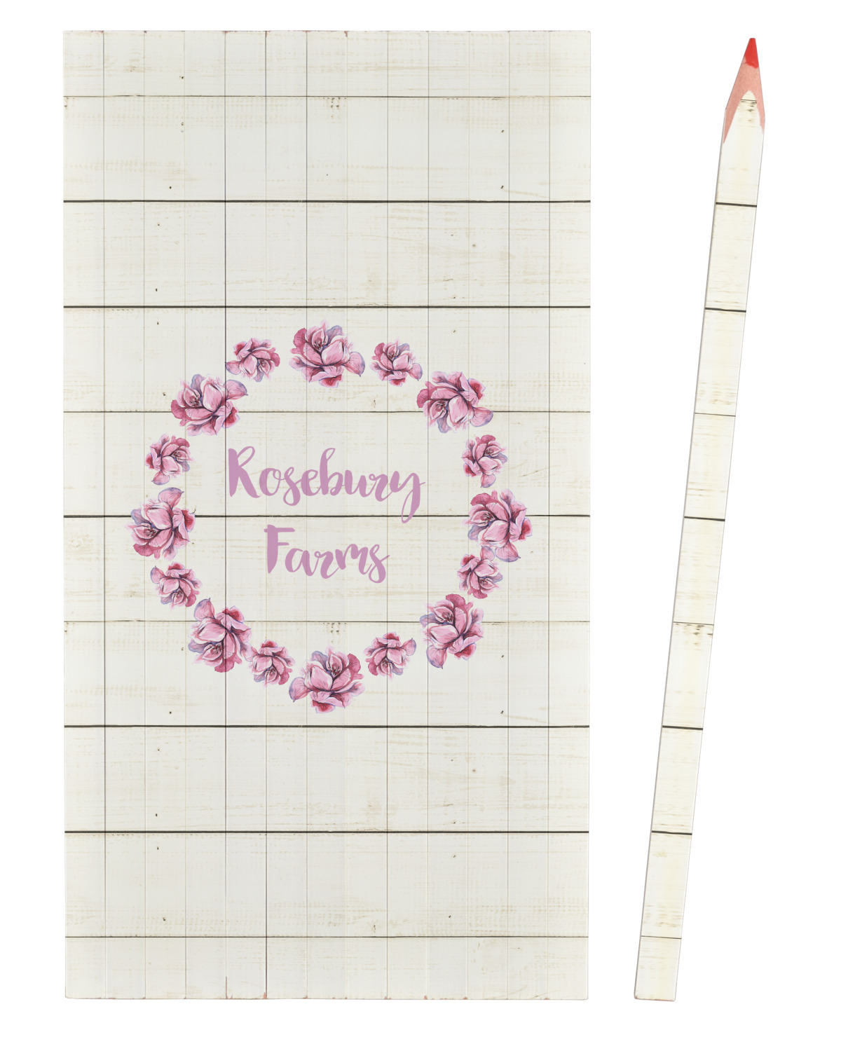 The coordinating design has the same wooden background with a flower illustration as the main graphic. This design is the perfect feminine touch to any accessory.