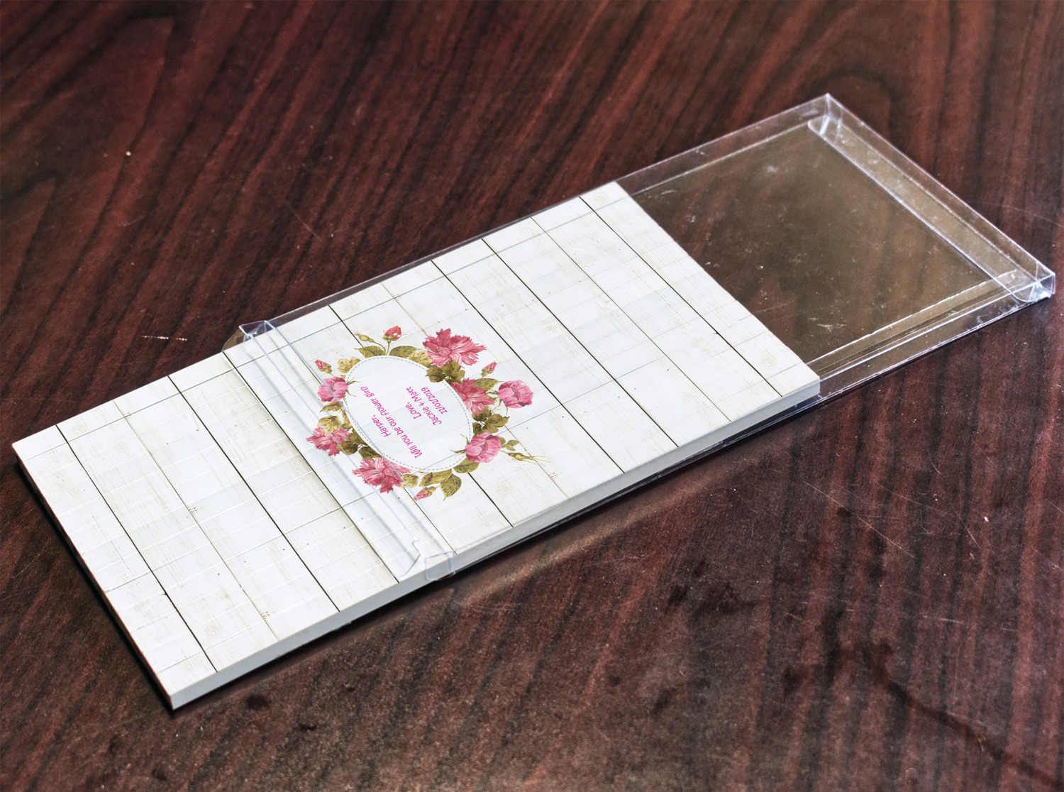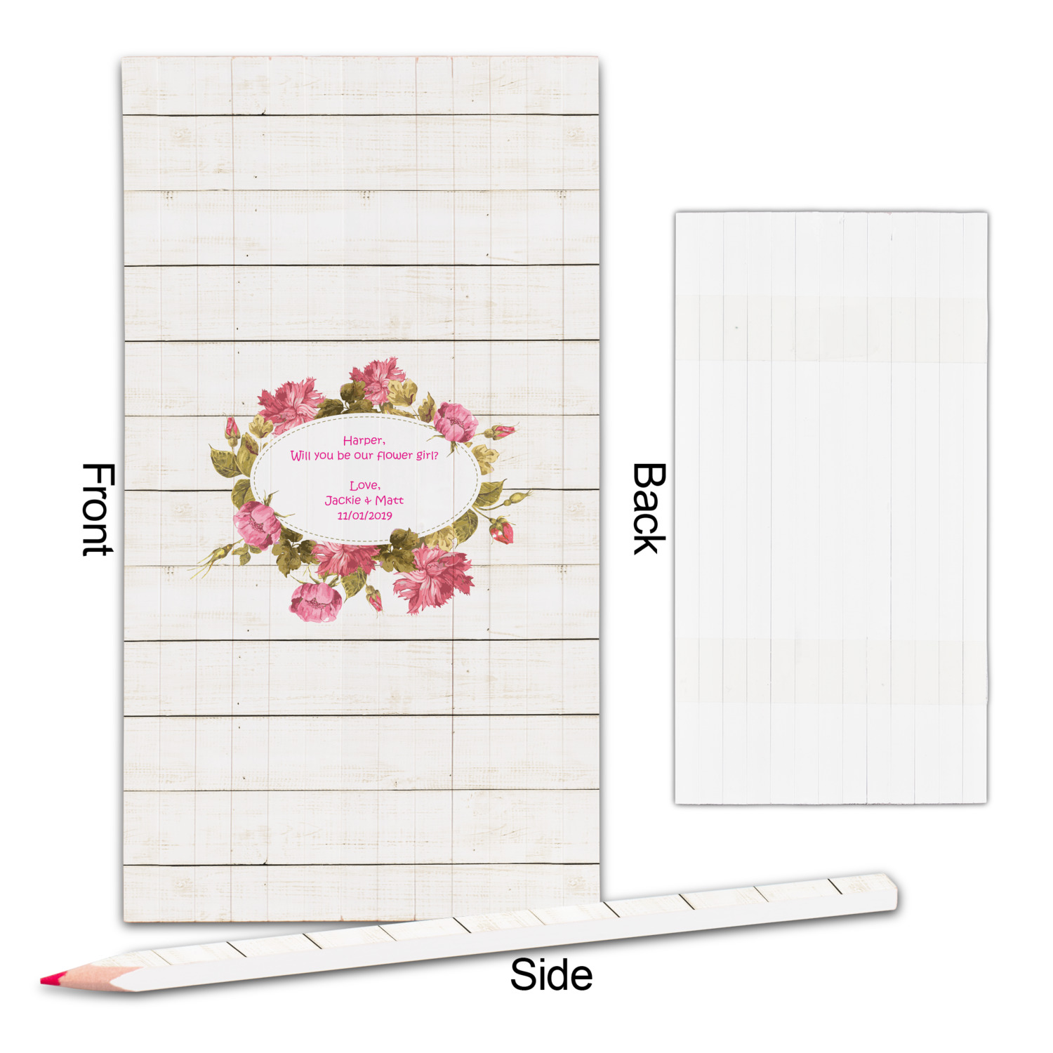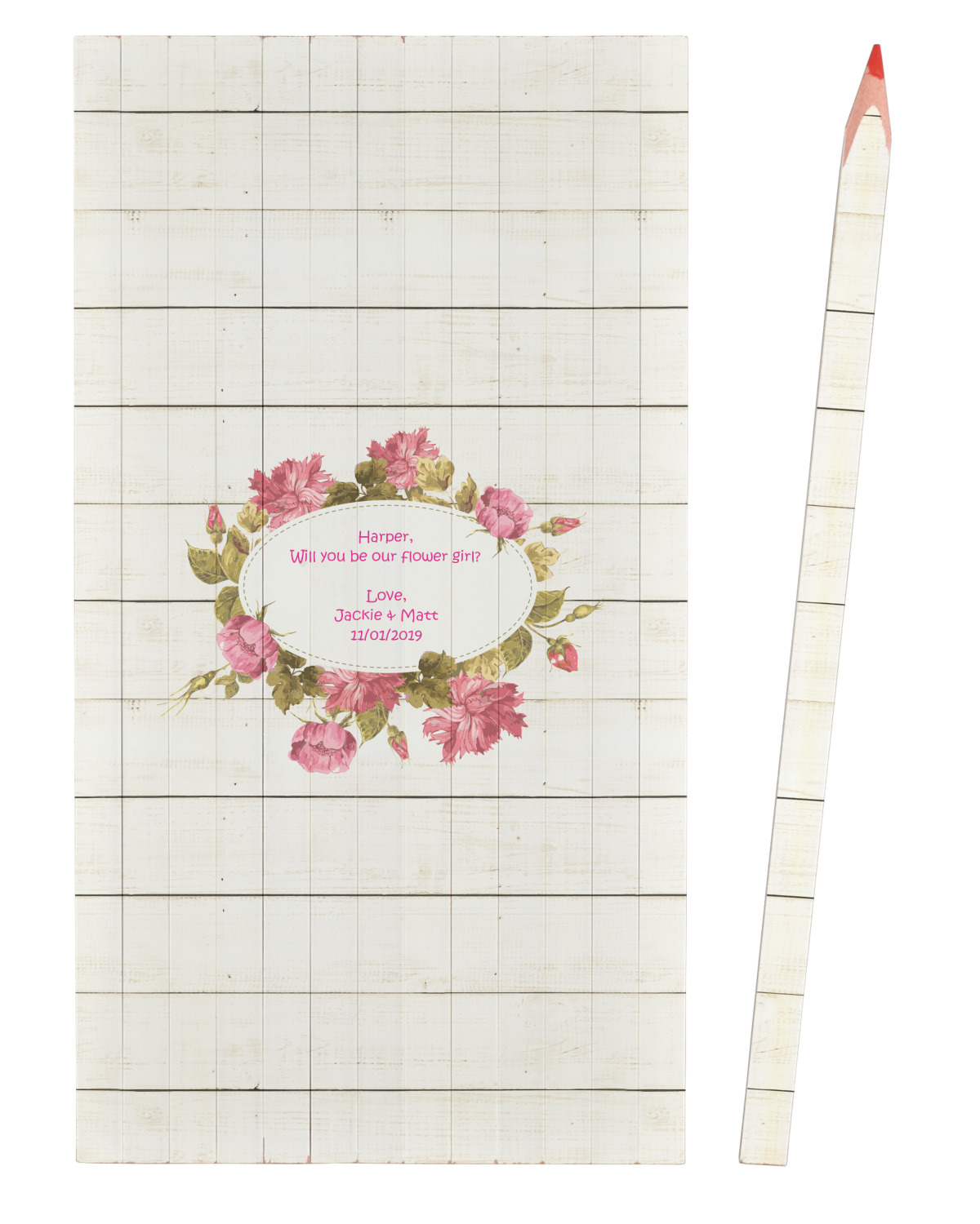 The coordinating design has the same wooden background with a flower illustration as the main graphic. This design is the perfect feminine touch to any accessory.