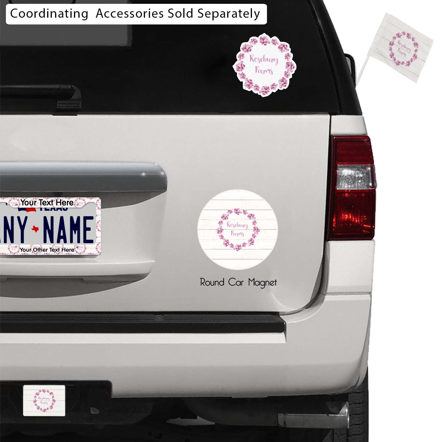 The coordinating design has the same wooden background with a flower illustration as the main graphic. This design is the perfect feminine touch to any accessory.