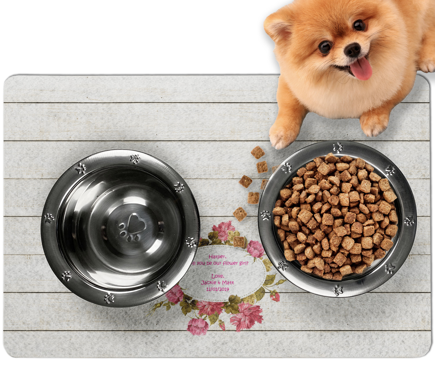 Frustrated with the mess your pets make during mealtime? Personalize a multi-functional dog food mat that prevents spills from reaching your floors, while also incorporating some cute decor to your dog's eating area!