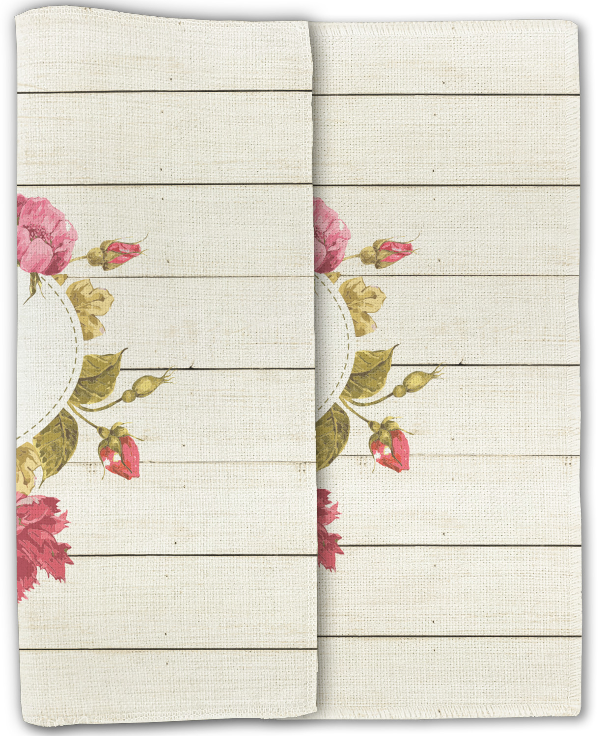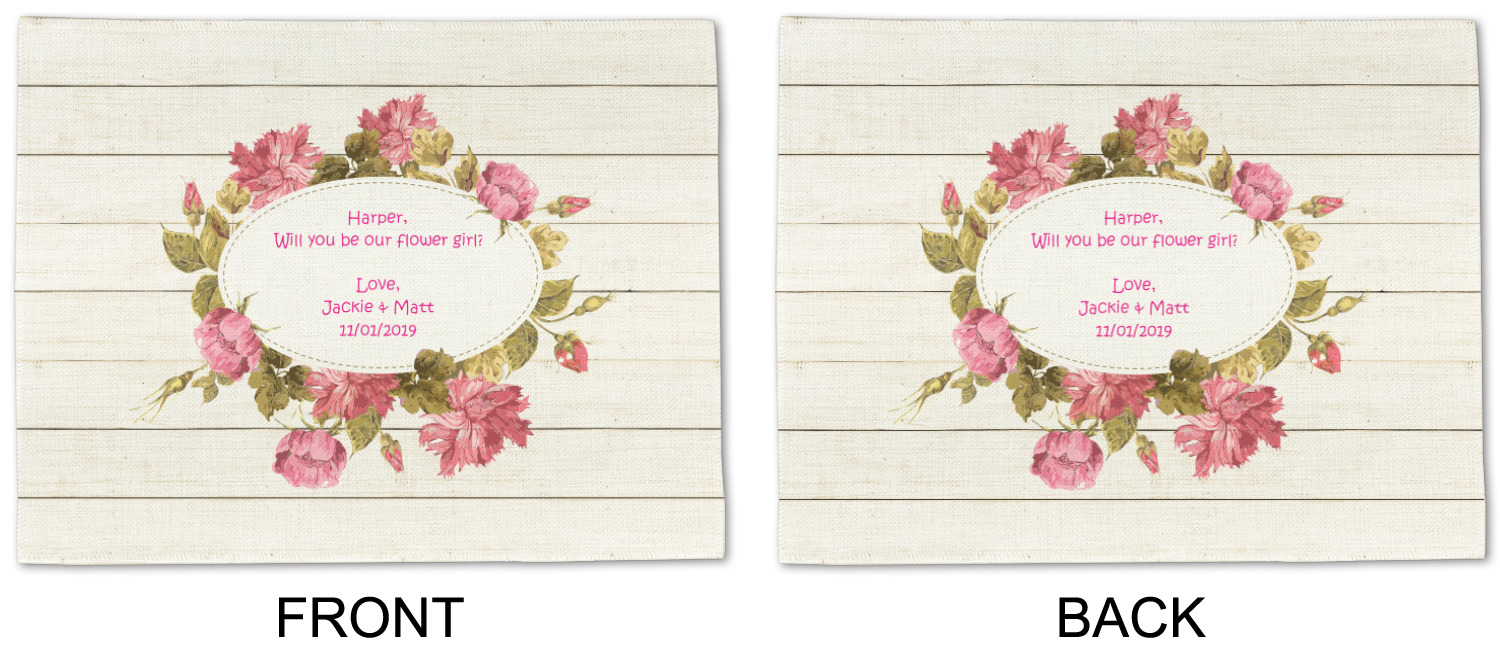 The main design has a background of weathered wooden planks. A beautiful light pink flower frame is used as the focal point of this design. The pink color of the frame and the personalization inside is the perfect contrast to the light colored wood.