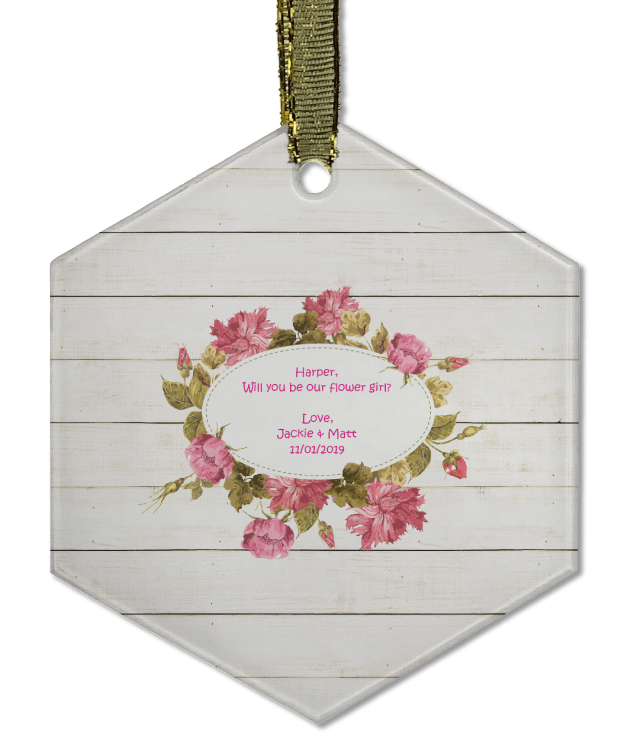 Each of our flat glass ornaments come with a gold string to hang on your Christmas tree with style! We offer two different shapes - flat, round ball or a hexagon. Both glass ornaments have a frosted coating on one side where we print your design while the other side is a clear gloss to give your personalized ornament a sheen finish. Our flat round glass ornament is approximately 3.5" x 3.5" while the flat hexagon ornaments are approximately 3.5" x 3".