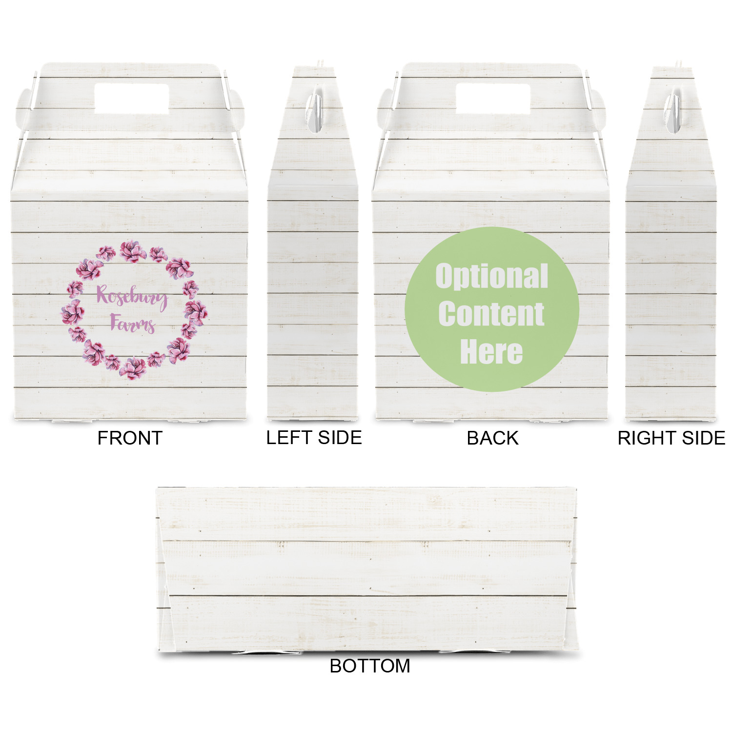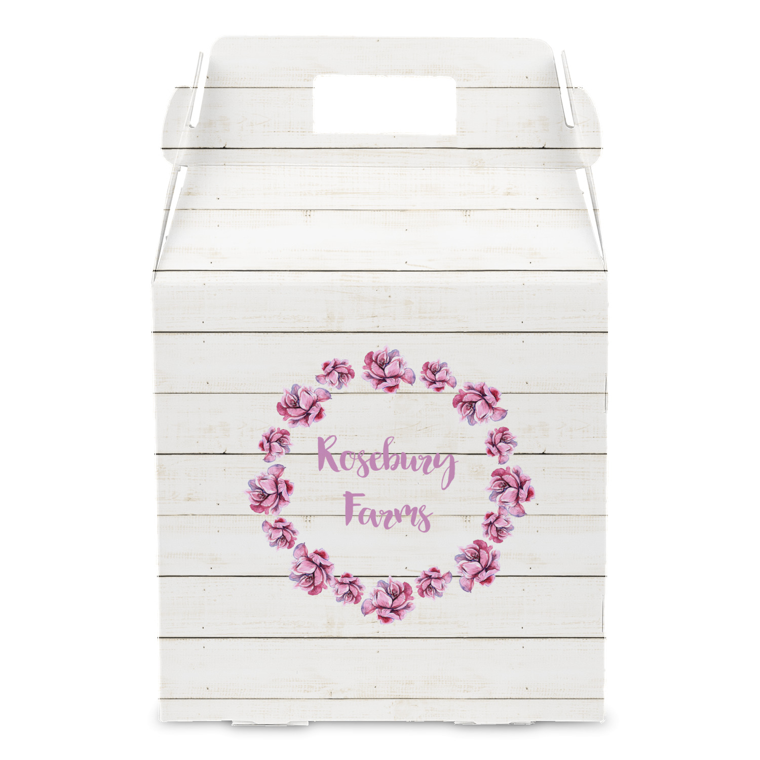 The main design has a background of weathered wooden planks. A beautiful light pink flower frame is used as the focal point of this design. The pink color of the frame and the personalization inside is the perfect contrast to the light colored wood.