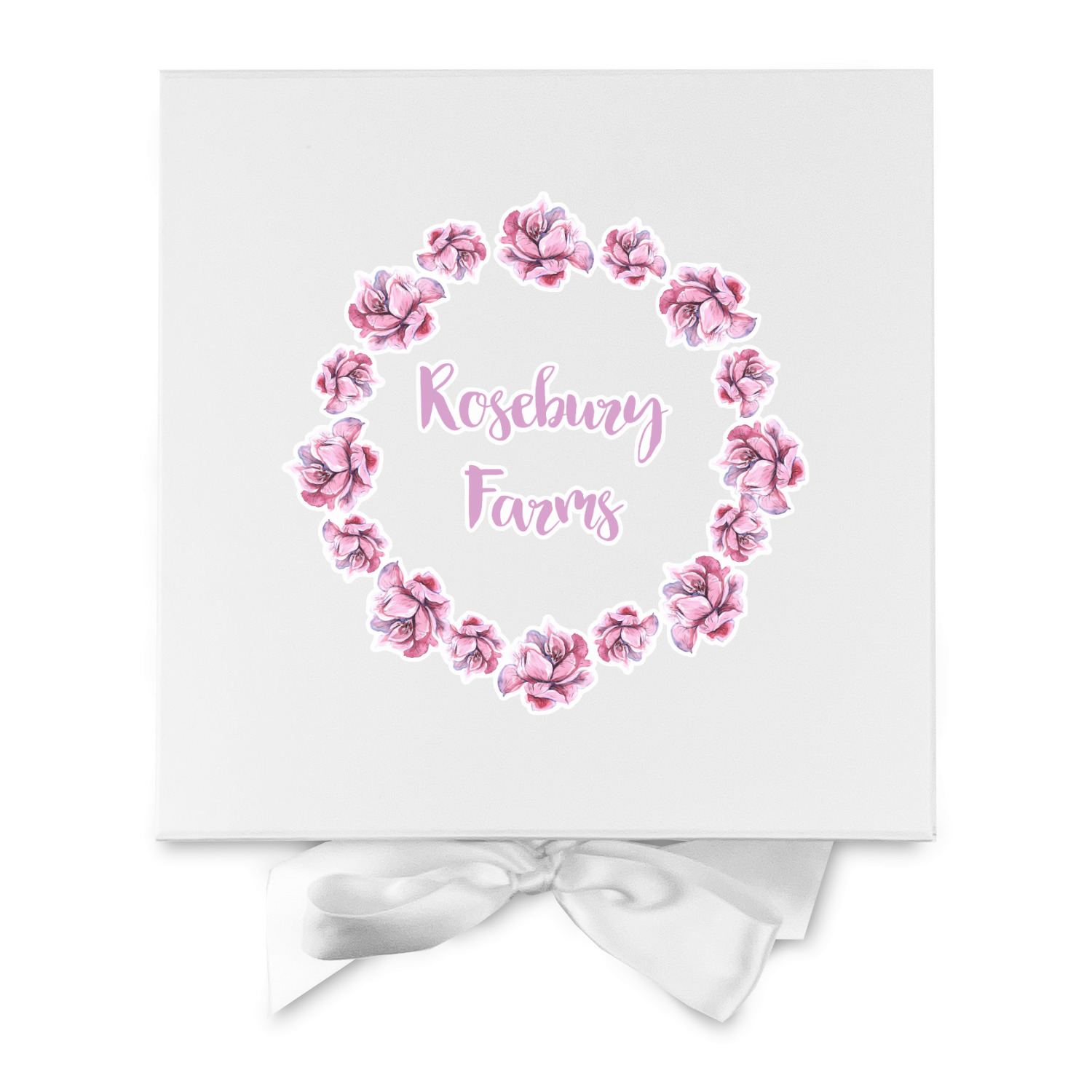 Design your own using our design library and we will print your artwork onto the lid of the gift box. When the box is closed the ribbons can be tied to secure the lid and add to the elegant look of these gift boxes.
