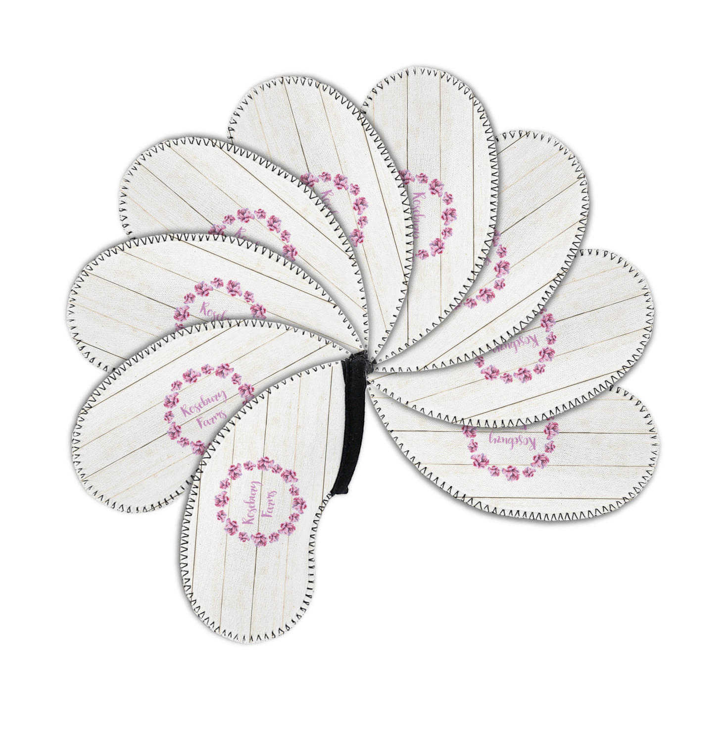 The coordinating design has the same wooden background with a flower illustration as the main graphic. This design is the perfect feminine touch to any accessory.