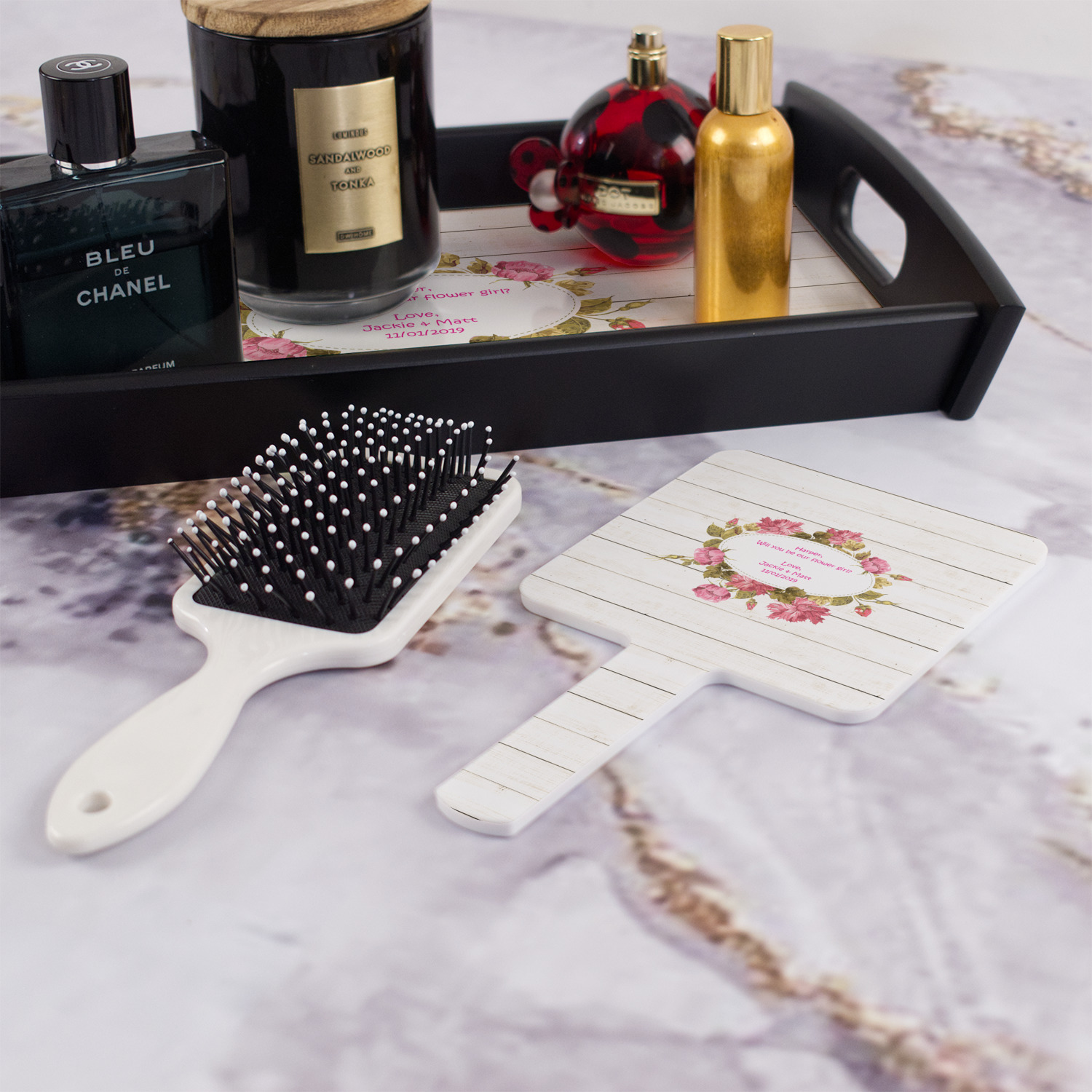 A hand-held mirror is a necessity for any lady in the bathroom - why not have one customized just for you? These mirrors are perfect for every day use and are compact enough to travel wherever your life may lead you.