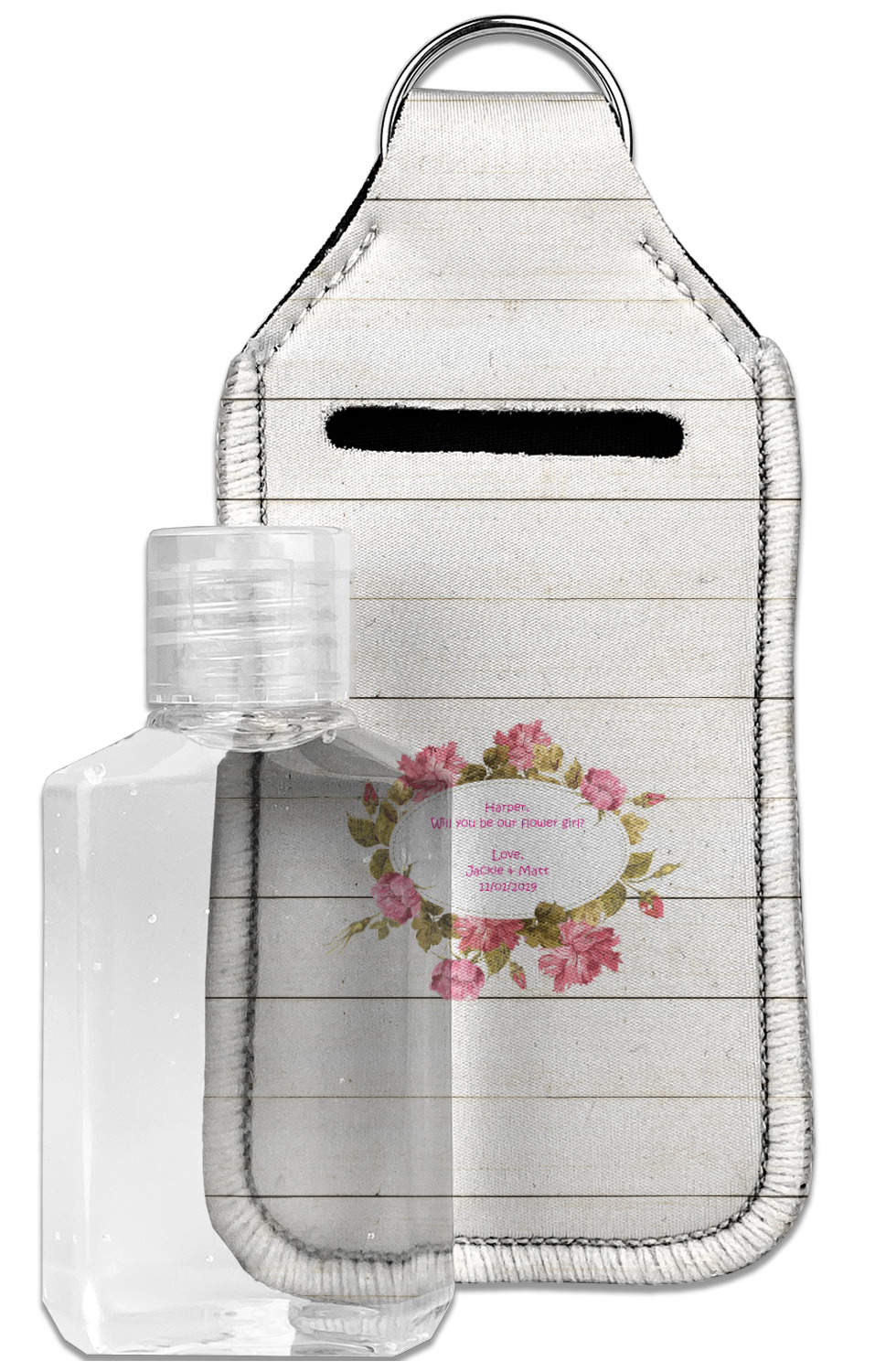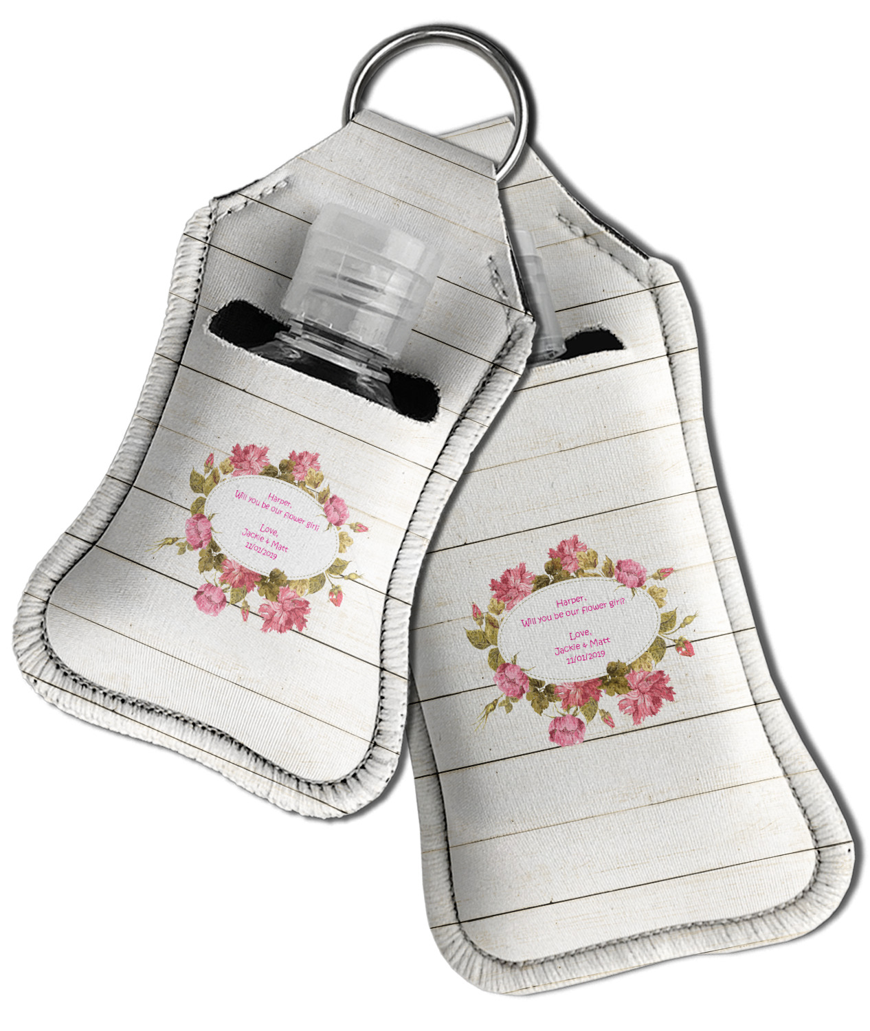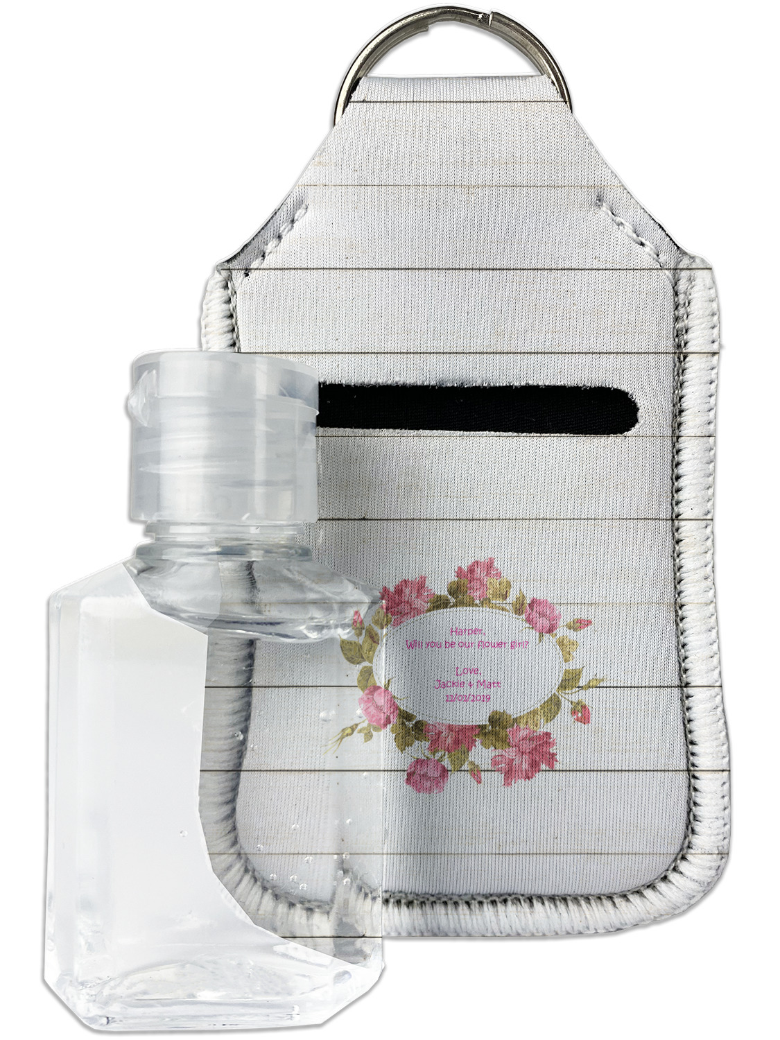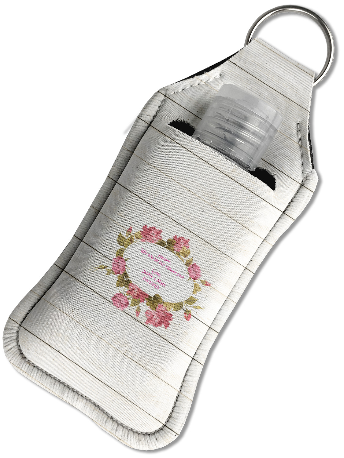 Each hand sanitizer holder comes with its own empty travel-sized, refillable hand sanitizer sure to fit snug in your customized sanitizer case! Our hand sanitizer cases are a durable, yet soft neoprene material sure to last any daily activities or travel agenda. Customize and personalize a hand sanitizer bottle holder with one of our two sizes - small (4.25" x 2.25") or large (5.5" x 2.5"). Each travel sanitizer holder comes with a keyring for attachment on bags, keys, or more!