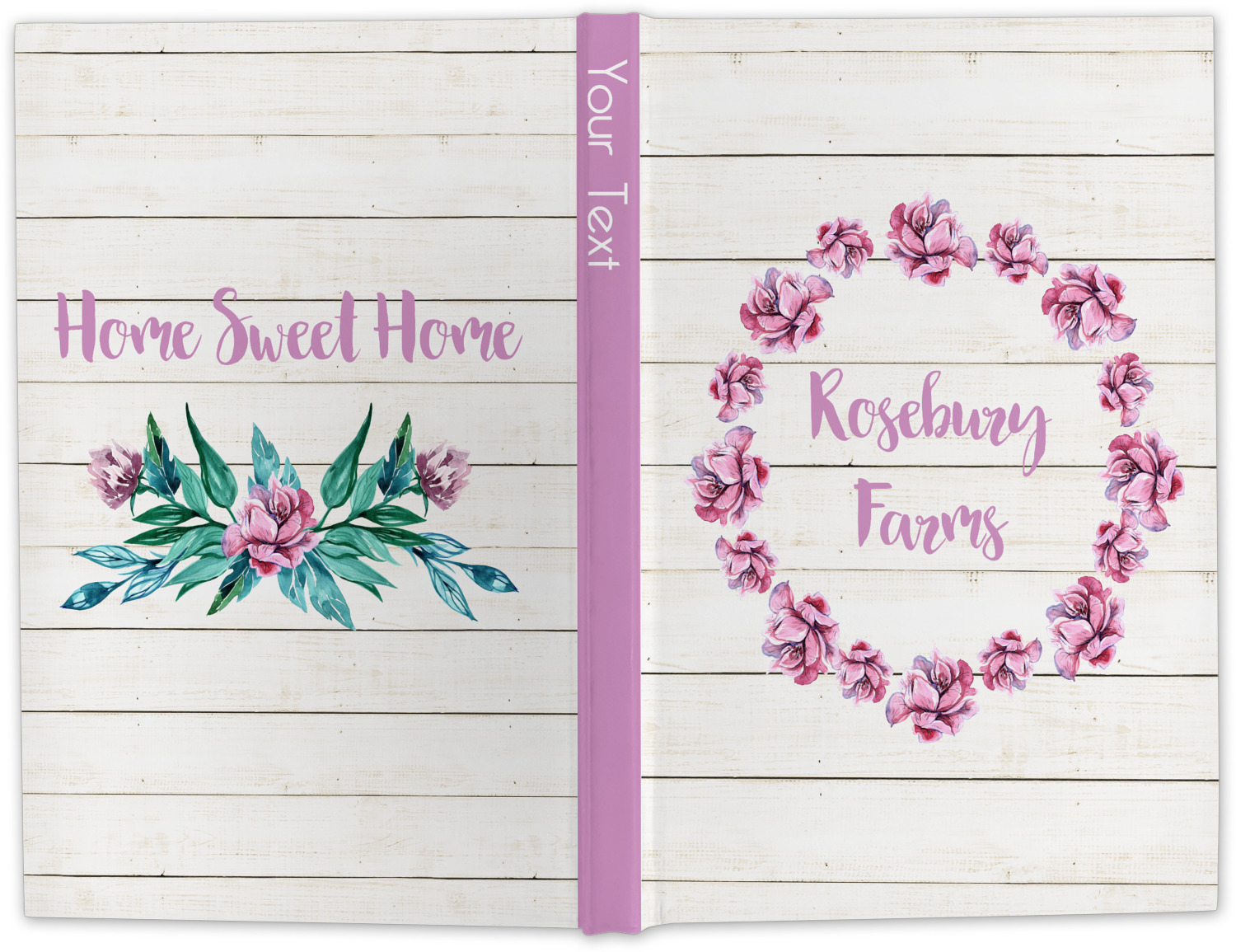 The main design has a background of weathered wooden planks. A beautiful light pink flower frame is used as the focal point of this design. The pink color of the frame and the personalization inside is the perfect contrast to the light colored wood.