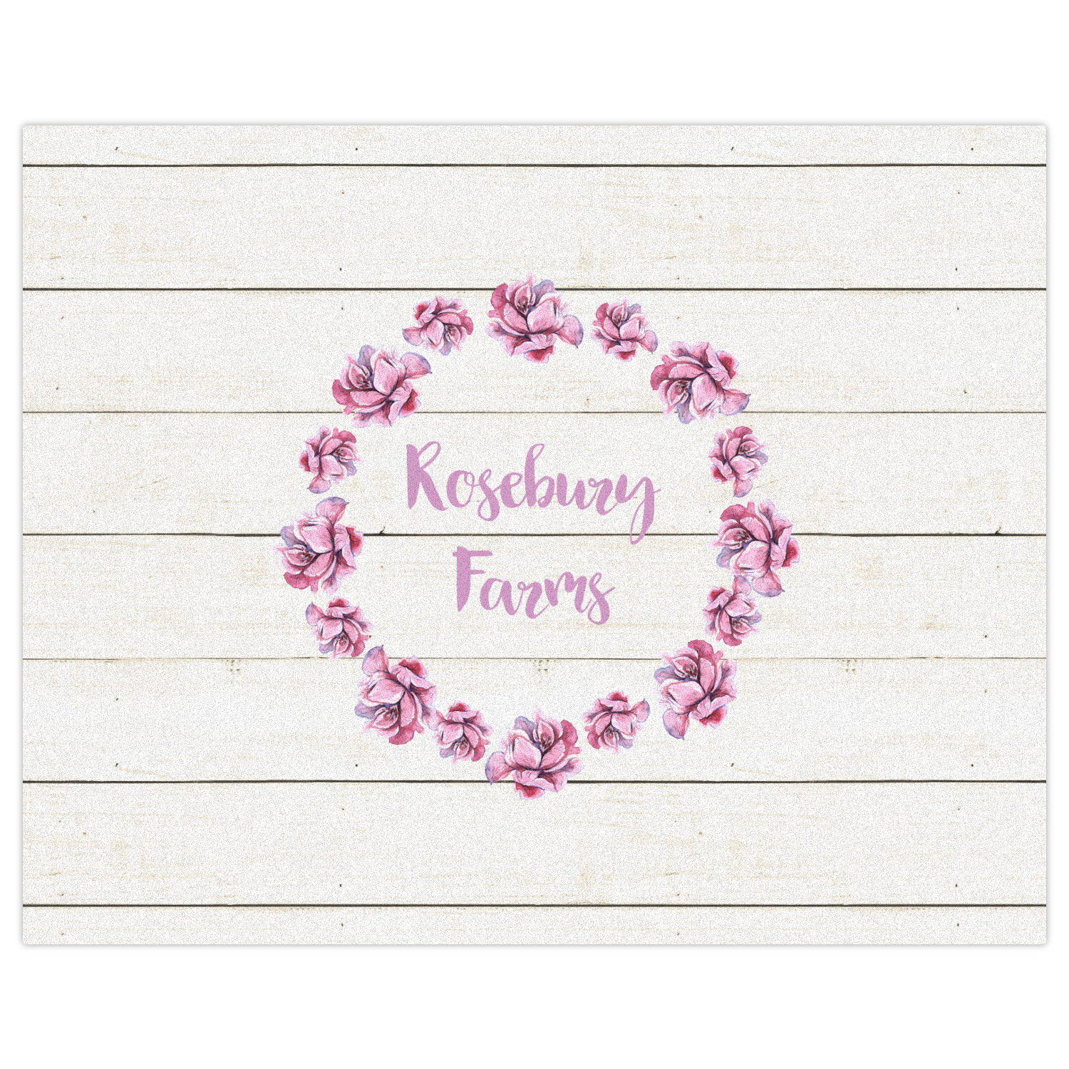 The main design has a background of weathered wooden planks. A beautiful light pink flower frame is used as the focal point of this design. The pink color of the frame and the personalization inside is the perfect contrast to the light colored wood.