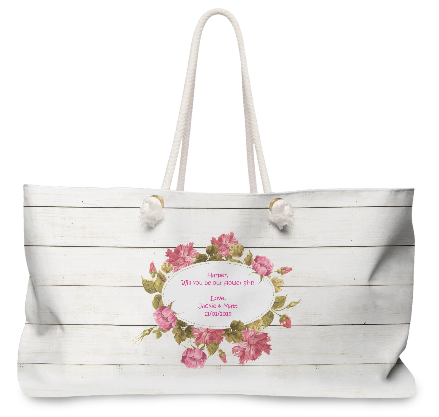 The main design has a background of weathered wooden planks. A beautiful light pink flower frame is used as the focal point of this design. The pink color of the frame and the personalization inside is the perfect contrast to the light colored wood.