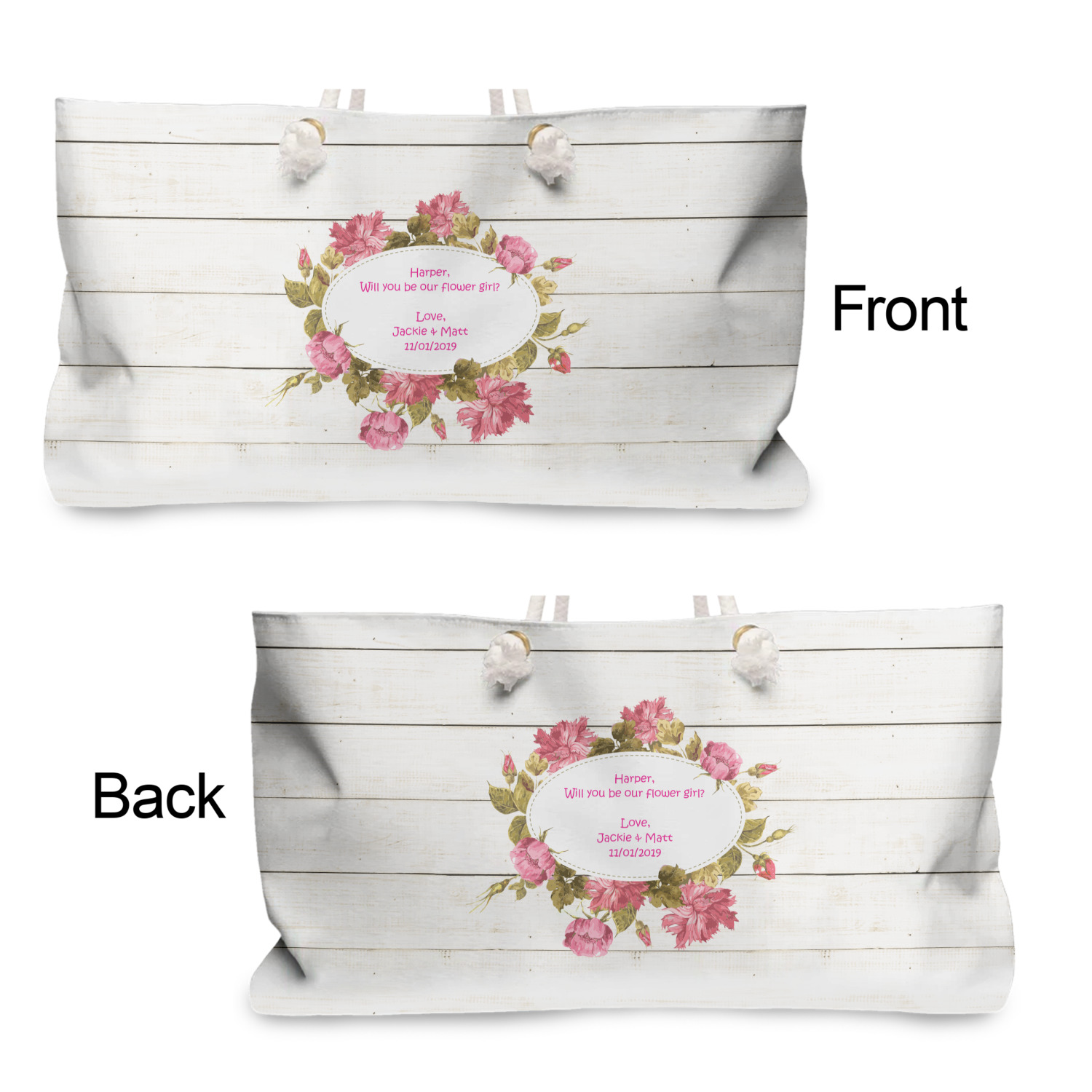These weekender totes can be customized front and back. The totes are full all over print - so the choice of how background are endless - from beautiful floral or leaf patterns to geometrics or some classic Van Gogh artwork - the possibilities are endless. The totes can also be decorated with photos and logos.