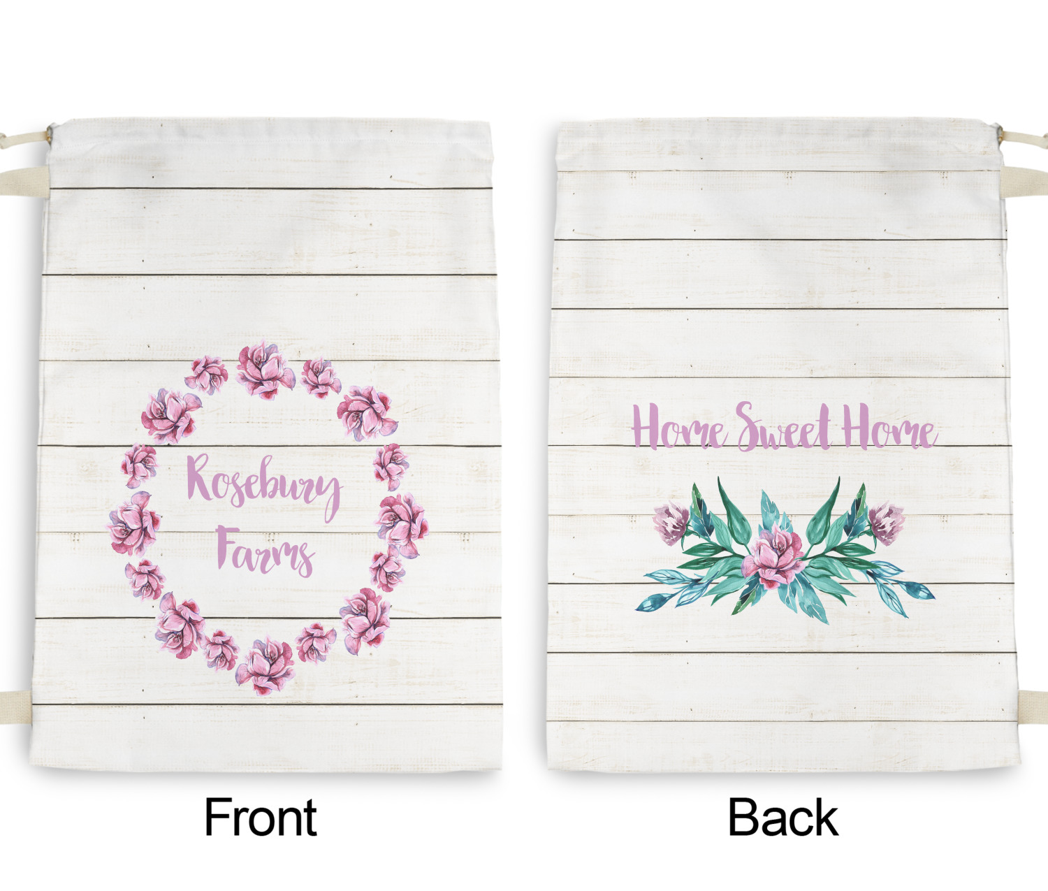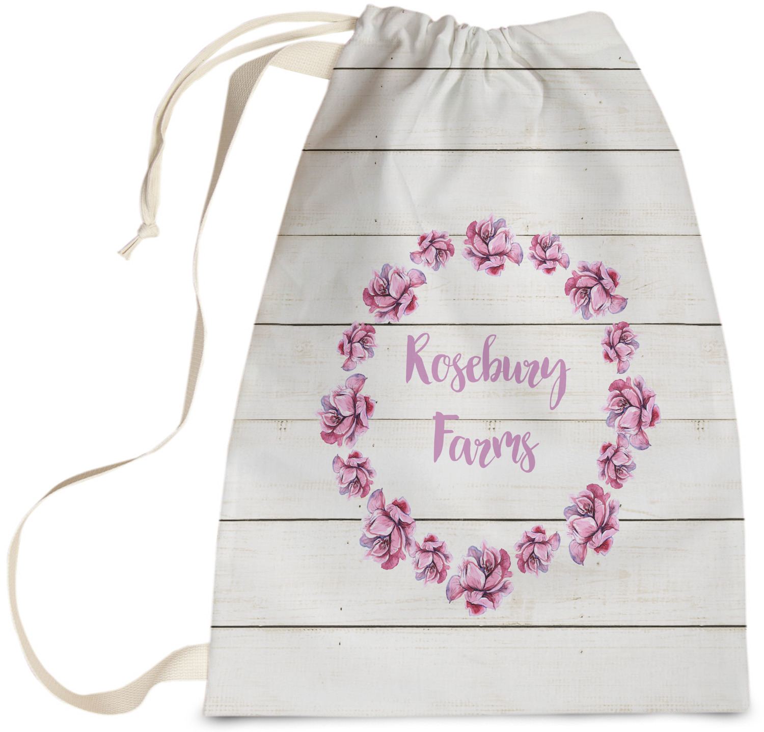Carry your laundry in style with these customized laundry bags. Available in two sizes, featuring a natural colored woven strap and a cinch cord, these bags hold a lot of clothes or anything else you want to fit in them.