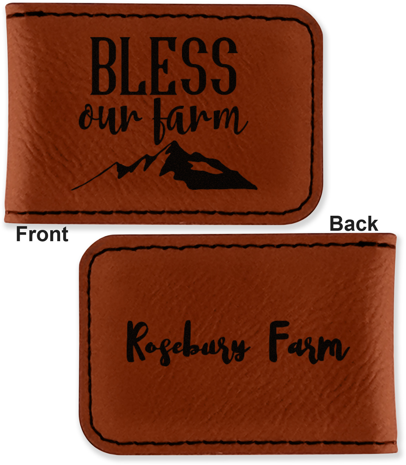 Your money clip will be laser engraved so that the design you choose will come out black. Find a fun graphic, monogram, or font to use to personalize your money clip either on just the front or the front and the back.