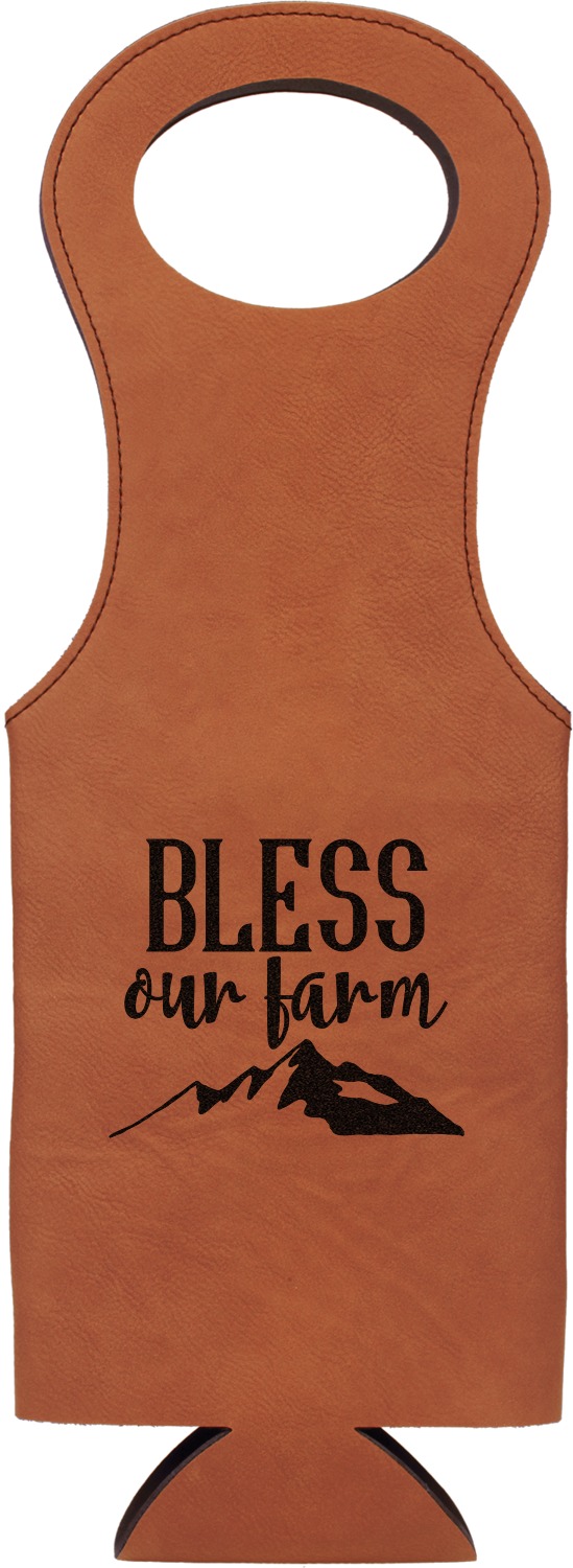 This wine carrier is made from a stunning leatherette, in a cognac-brown color. Strong, black stitching lines the sides of your wine bottle bag and provides extra durability. The interior is lined with a padded, black material to allow for a snug fit once your bottle is placed inside. At the top of this wine gift bag, you'll find two oval shaped handles that elegantly complements the rest of the bag's style. We provide you with the option of laser-engraving the front, or the front and back of your new personalized wine bag!