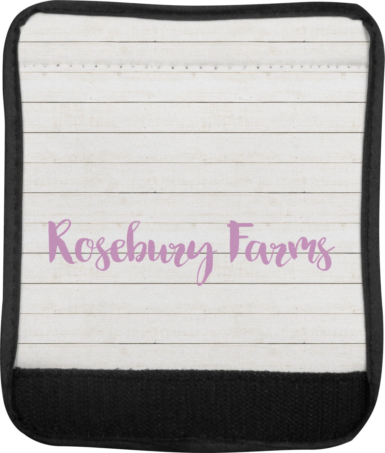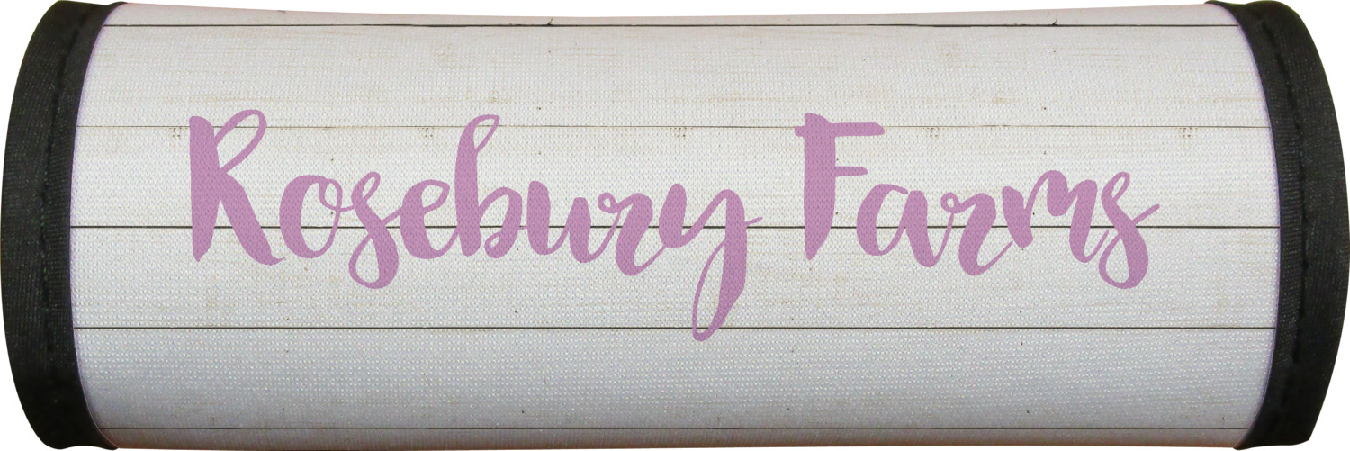 The luggage handle covers are made of neoprene with black trim and have Velcro closure to snugly fit around the handle. Your design is printed on the neoprene. The covers measure approx 5"x6".