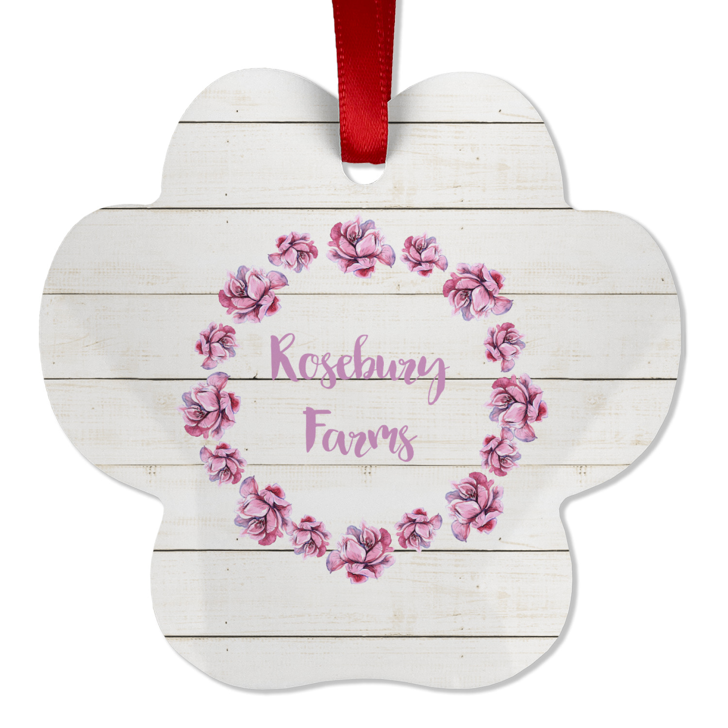 The main design has a background of weathered wooden planks. A beautiful light pink flower frame is used as the focal point of this design. The pink color of the frame and the personalization inside is the perfect contrast to the light colored wood.