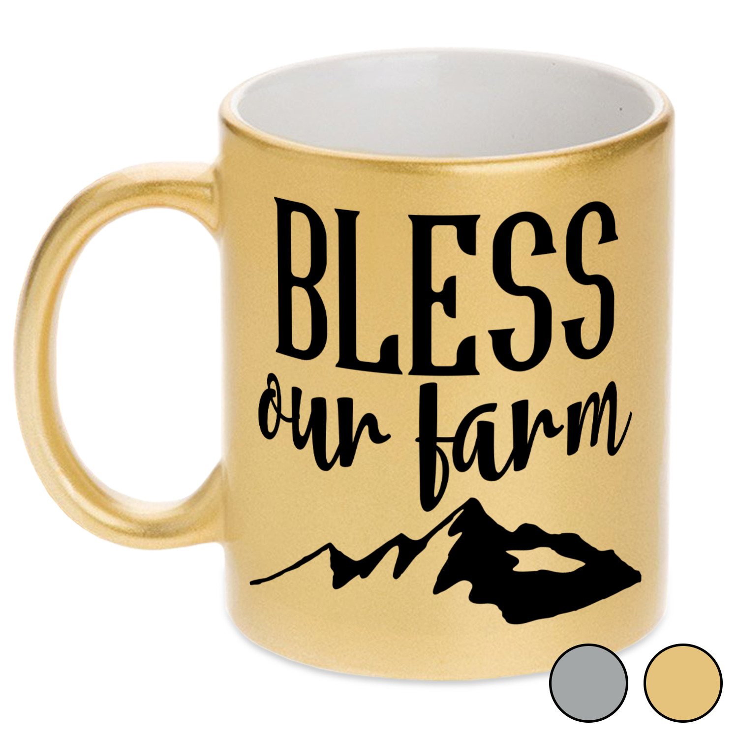 Our custom mugs are ceramic, which is great for keeping your tea or coffee warm! We offer two metallic mugs to personalize - Silver or Gold. Both styles hold around 11oz and have dimensions of approximately 3.75" x 3.5" x 4.75". Both the metallic mugs come in a matte finish and have glitter detailing to add a more pristine feel to the gold and silver base colors.