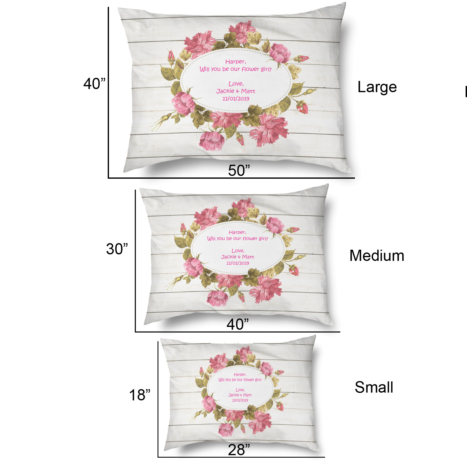 The main design has a background of weathered wooden planks. A beautiful light pink flower frame is used as the focal point of this design. The pink color of the frame and the personalization inside is the perfect contrast to the light colored wood.