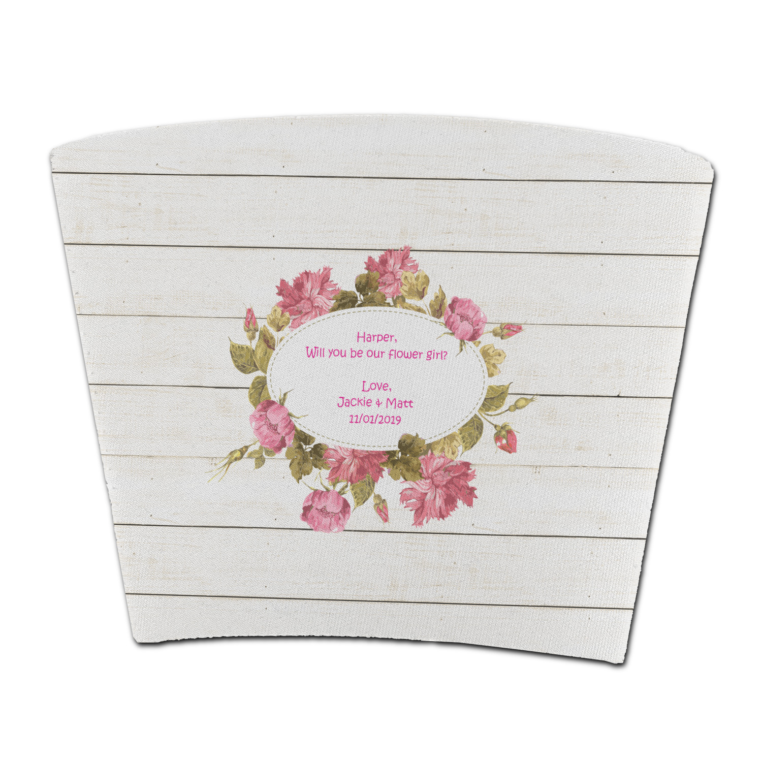 The main design has a background of weathered wooden planks. A beautiful light pink flower frame is used as the focal point of this design. The pink color of the frame and the personalization inside is the perfect contrast to the light colored wood.