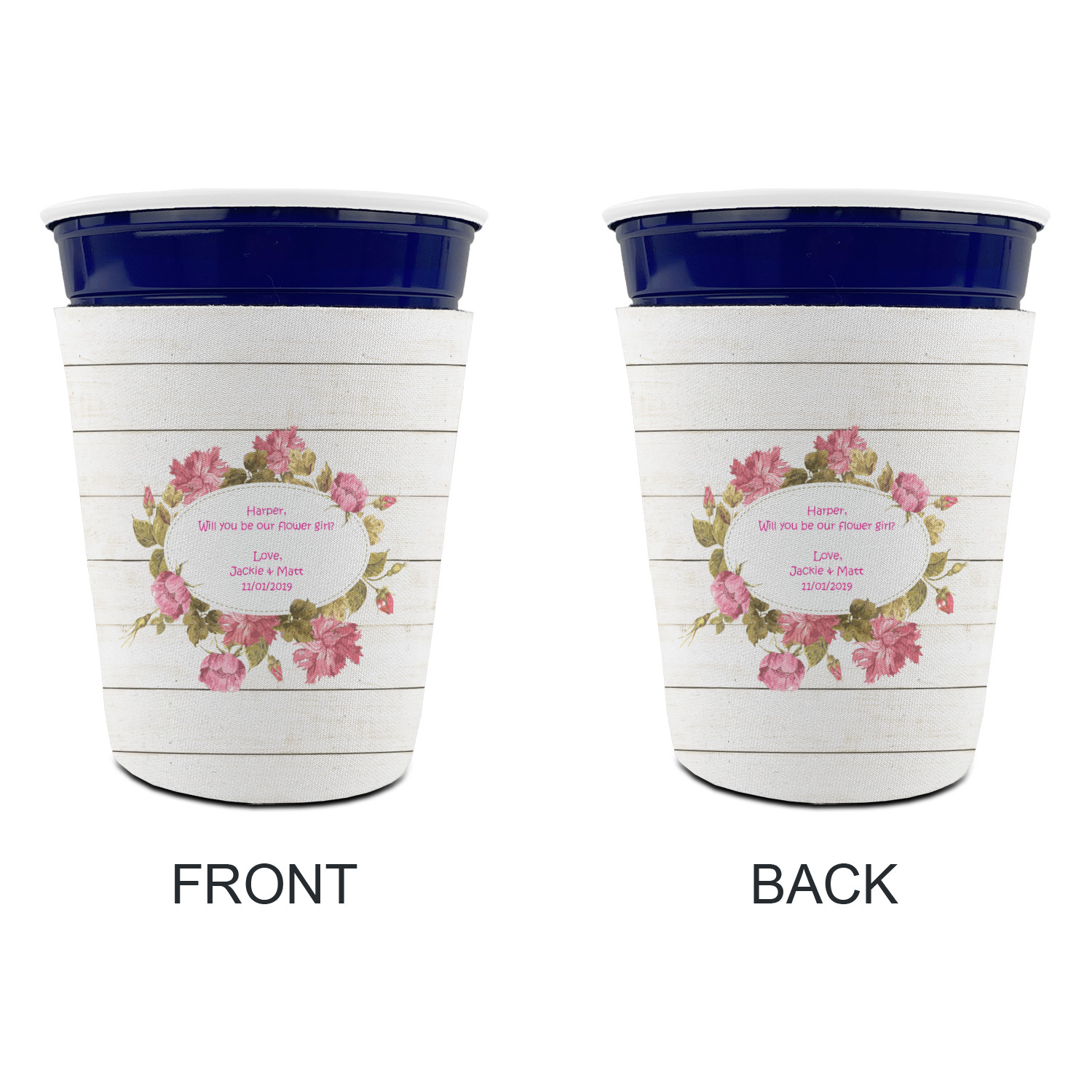 Made from neoprene with a polyester outer fabric and sewn seams, these premium quality party cup sleeves are very durable and will hold up to heavy use. They are available in 2 styles - with a bottom or just a sleeve to go around the outside of the tapered cup. The sleeve covers are about 4" tall and cover about 90% of the classic 16 oz. Solo cup.
