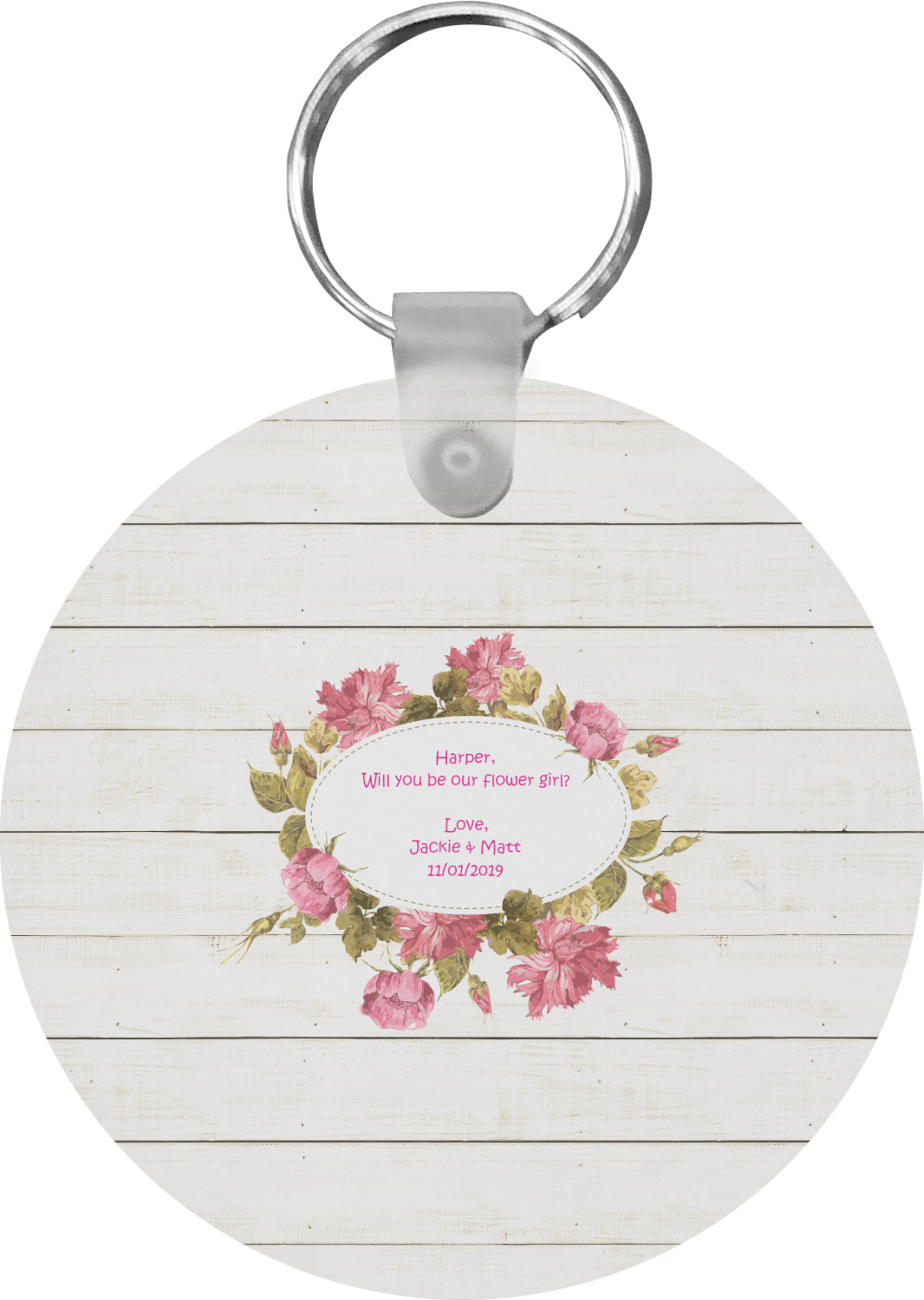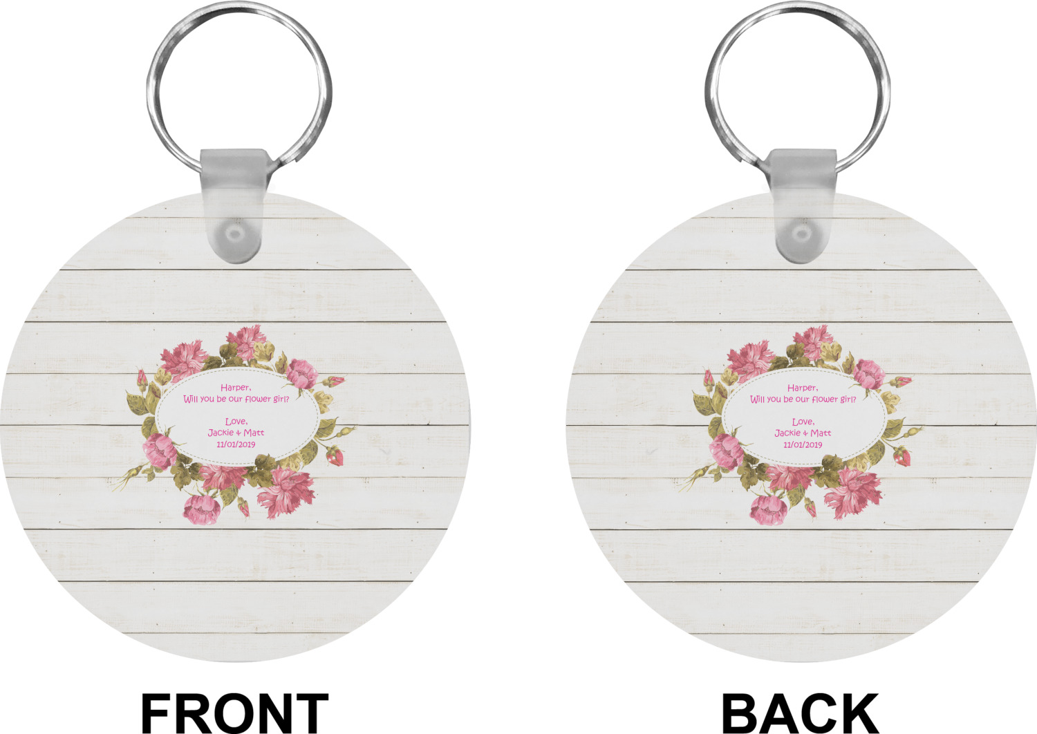 Our personalized keychains attach to the included metal, split key ring with a plastic, removable snap. Since a metal ring is included with your purchase, you have the liberty to keep your keys together on the ring, with or without your unique keychain. We offer this keychain in three different shapes: circle, heart, or diamond. We print your personalized design(s) on both sides of the key chain, and the surface has a glossy, reflective finish that only emphasizes your design. Each keychain is approximately 2.25 by 2.25 inches.