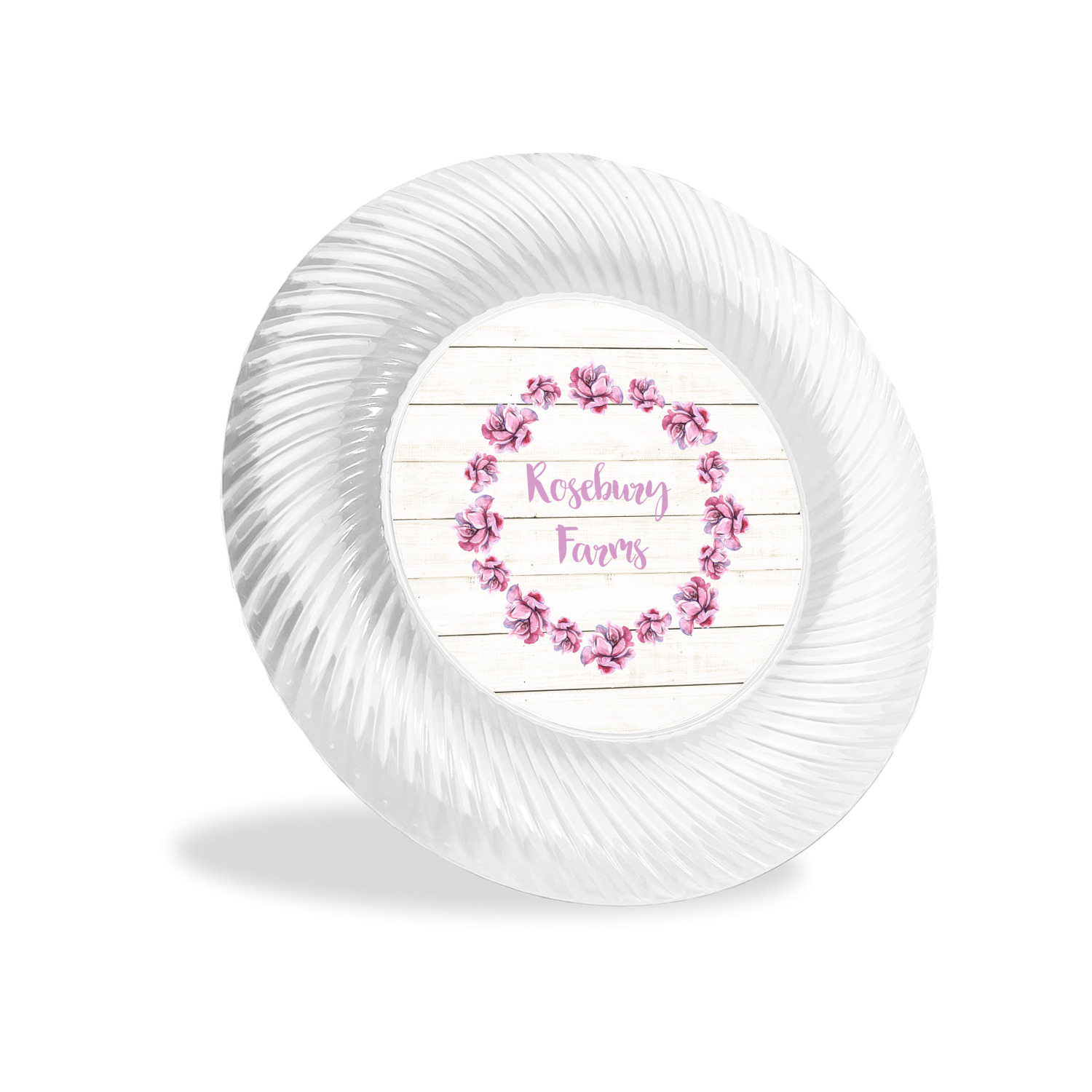 Made from a beautiful clear plastic plate as a base, your design is printed to the underside of the plate. The outside of the plate has a classic swirl texture to it for a high quality look and feel.