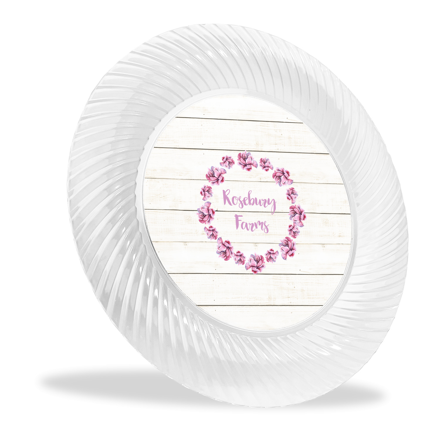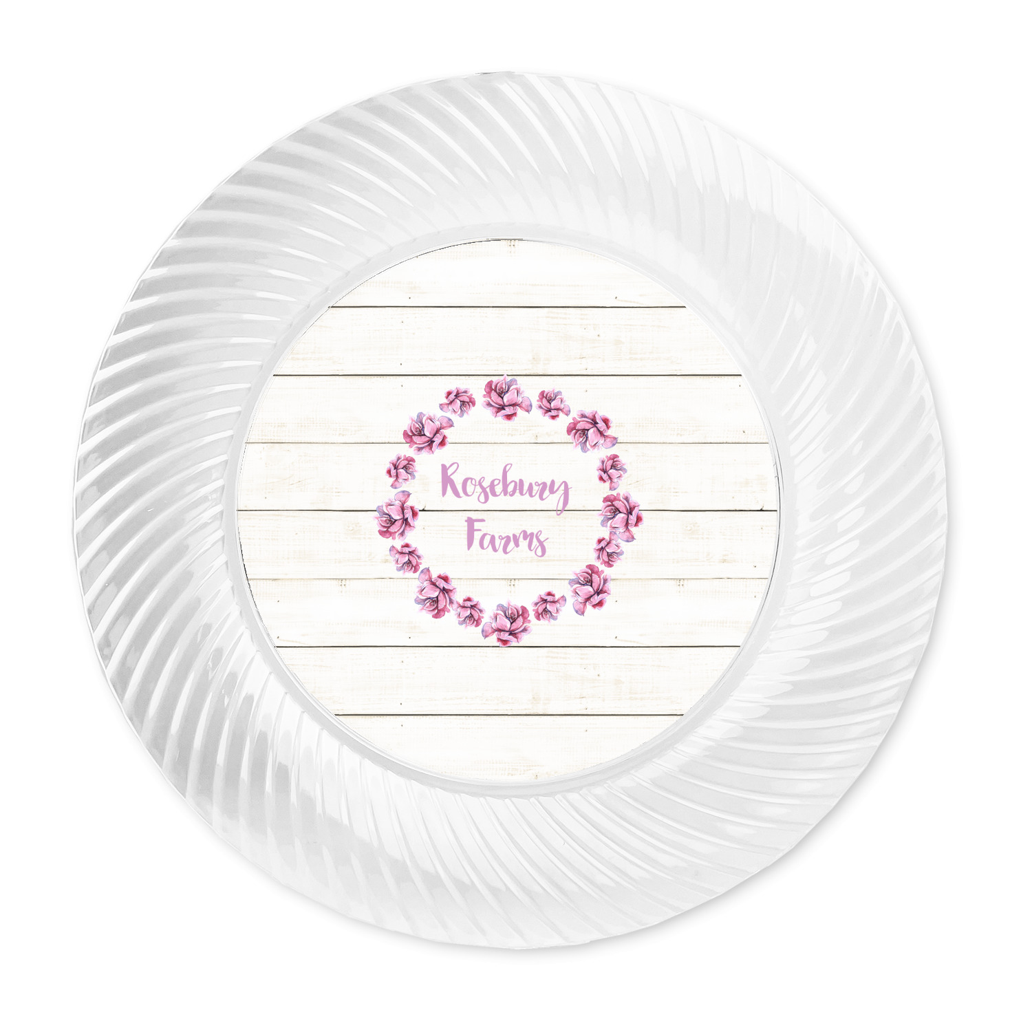 Made from a beautiful clear plastic plate as a base, your design is printed to the underside of the plate. The outside of these disposable plates has a classic swirl texture to it for a high quality look and feel.