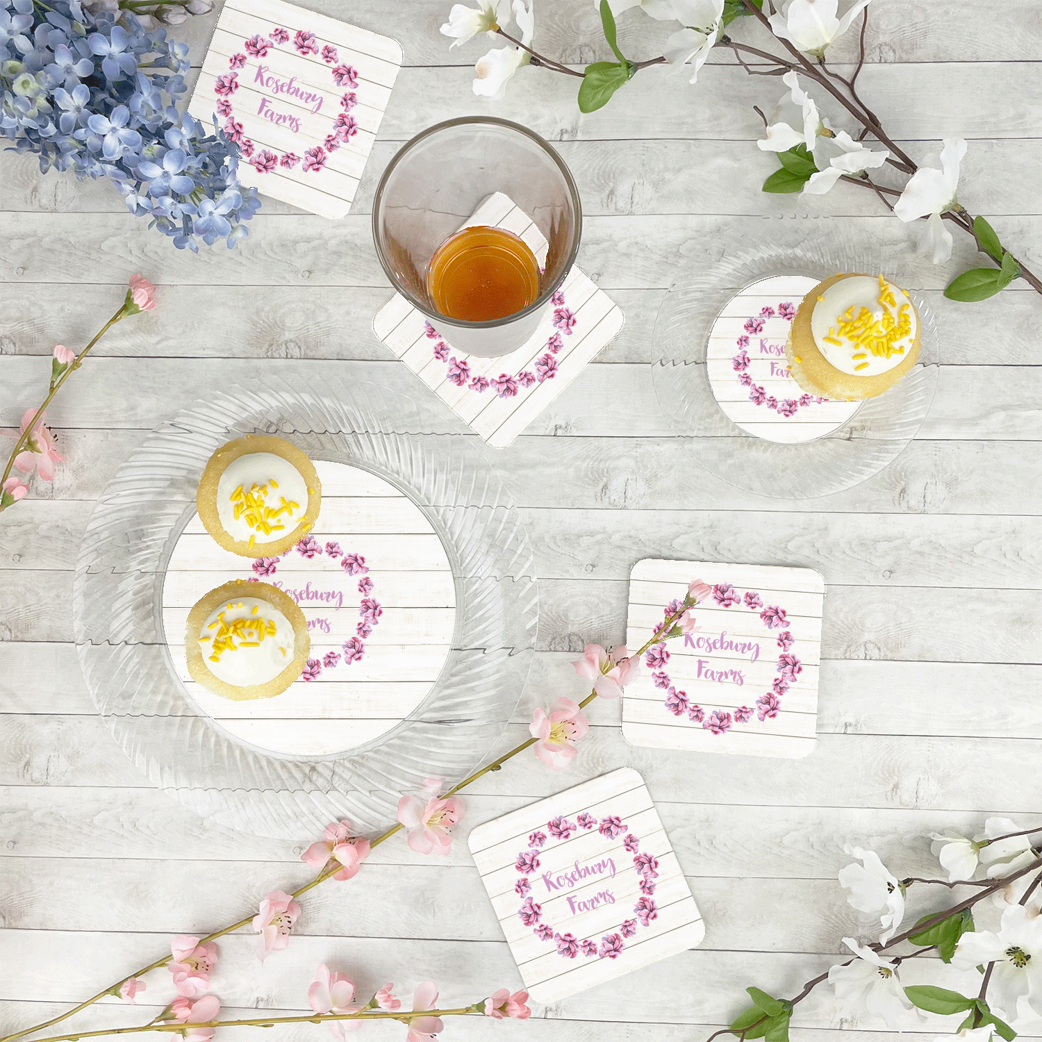 The coordinating design has the same wooden background with a flower illustration as the main graphic. This design is the perfect feminine touch to any accessory.