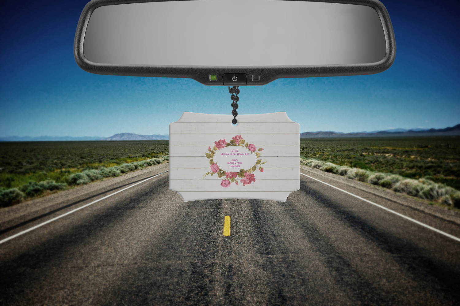 Crafted from a sturdy aluminum, these mirror ornaments proudly flaunt your personalized design(s) on both sides. A glossy finish is applied to your ornament, to accentuate the vibrancy of your design. A 10”, black, beaded chain accompanies your rear view mirror accessory, but can be adjusted to meet your desired length. We have this charm in two shapes; Benelux and Berlin. The Benelux measures at 4 by 2.5 inches, and is 0.045 inches thick. The Berlin measures at 4 by 2.75 inches and 0.045 inches deep.