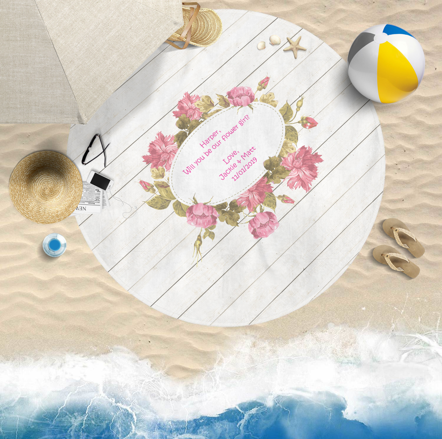 Think out of the box on your next beach, pool, or picnic day in style on your personalized round towel. This must have durable accessory is the perfect size for keeping you, and your possessions out of the sand. Sprawl out in the sun without getting your hands dirty, the unique round design allows for a full range of motion.
