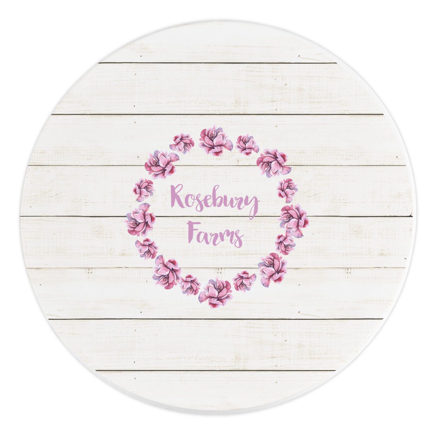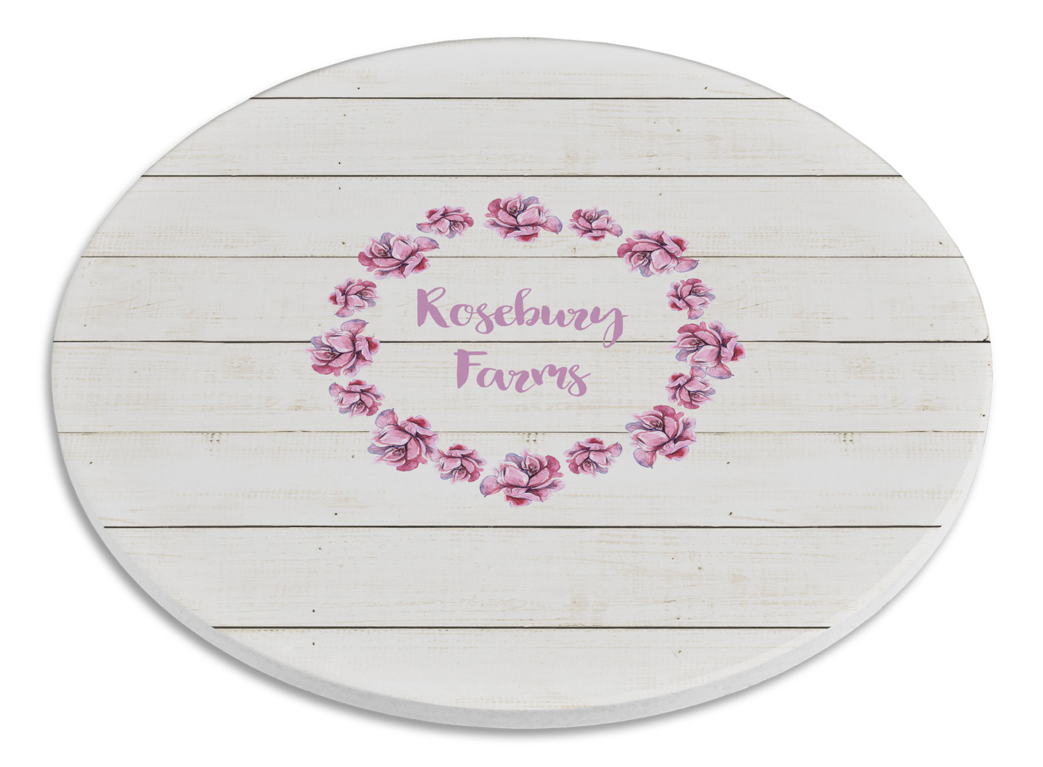 The main design has a background of weathered wooden planks. A beautiful light pink flower frame is used as the focal point of this design. The pink color of the frame and the personalization inside is the perfect contrast to the light colored wood.