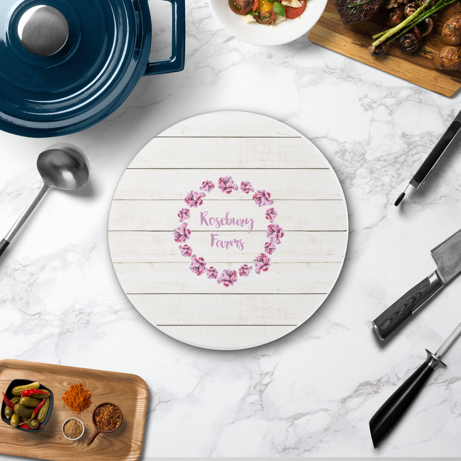 The round trivets can be customized with your own design, your own photo, or your own logo. You can add personalization, like a monogram, family name or initial to your uploaded design / art. You can also customize one of our designs and change the patterns, colors, personalization, fonts etc.