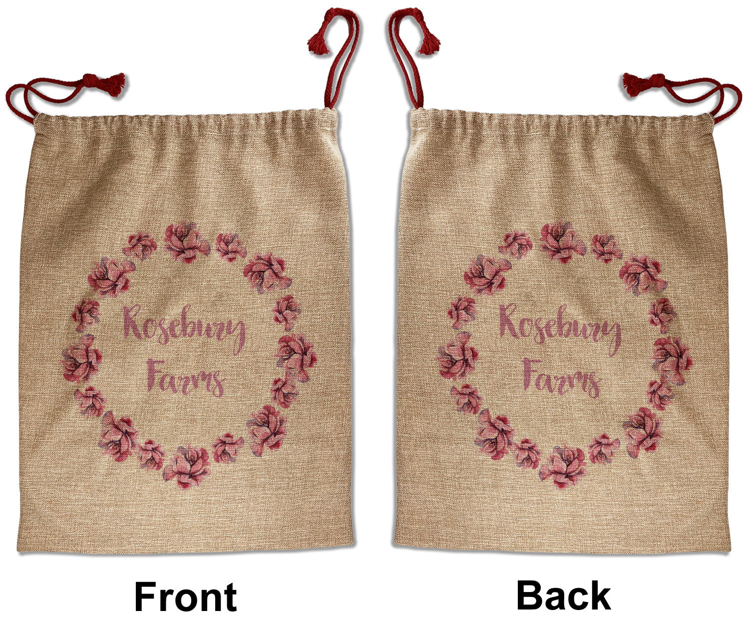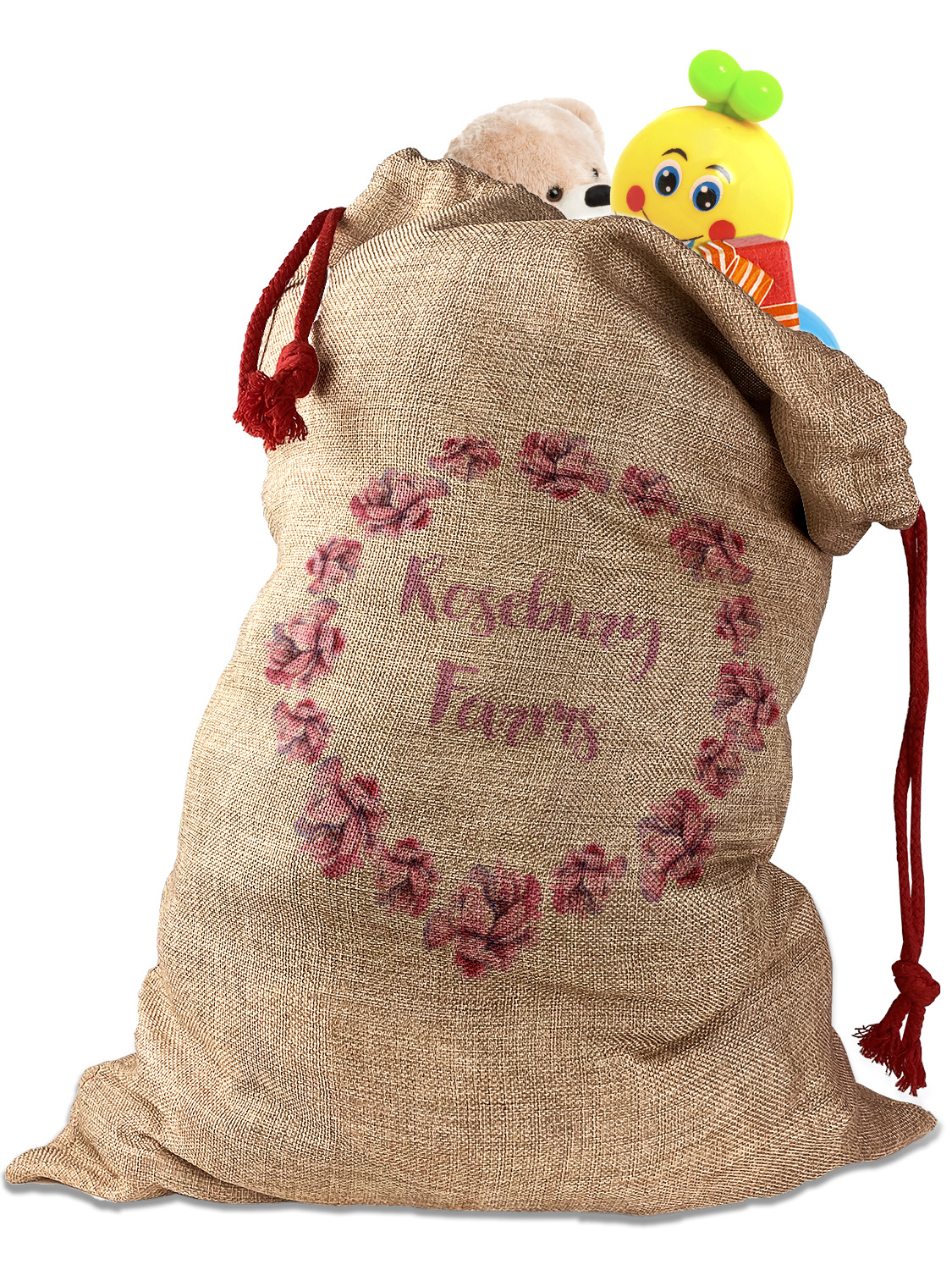 Our Santa sacks print your design on the burlap material giving it a nice rustic, natural design! The burlap material is also machine washable and wrinkle-free, so feel free to fold and store out Santa bags until the next time you need it! Secure your gifts with our red accent drawstring ties at the top of the sack so the mystery of your gift stays a surprise until Christmas day. We offer two types of printing- one side partial print or double-sided partial printing. Design and personalize your own Santa sack in time for the holidays!