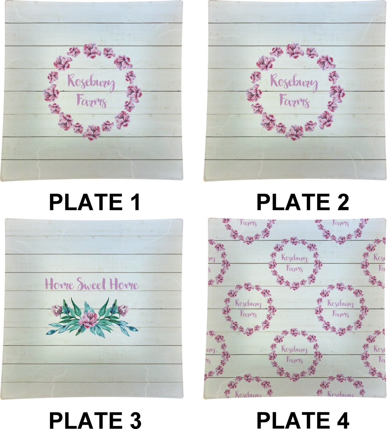 Farmhouse Designs for Glass Square Lunch / Dinner Plates 9.5" - Set of 4
