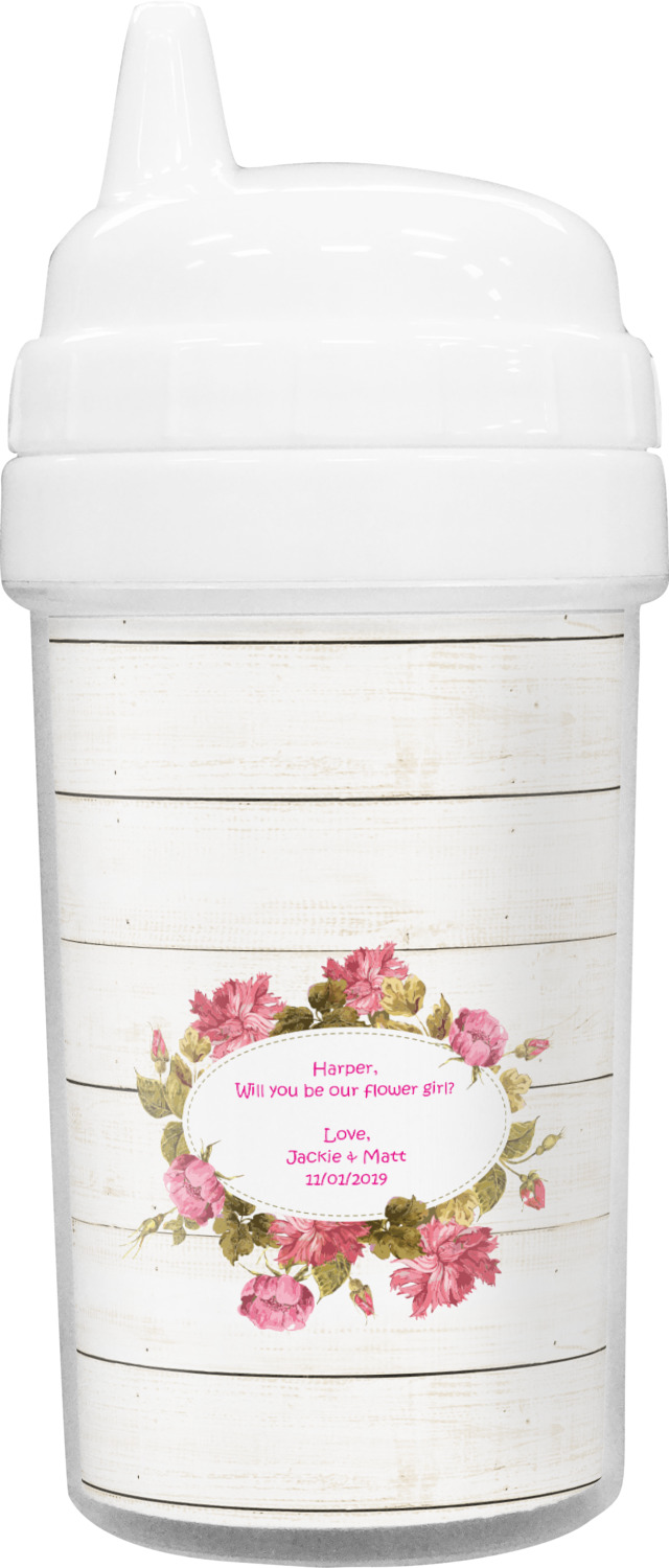 Our toddler cups are free of BPA, and have a twist-open lid so that you can easily fill and clean these cups for your young ones. Each cup also comes with a sippy nozzle to reduce spills. We offer these custom sippy cups in two different sizes; we have a baby sippy cup that holds 5 ounces, and a toddler sippy cup that holds 10 ounces. Your customization is printed on a premium glossy media insert that is placed within these toddler drinking cups.