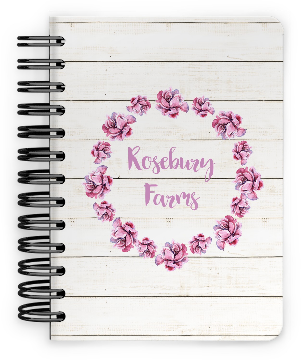 This spiral notebook includes 75 sheets of thick, ruled paper. The front and back of this custom notebook is made of a robust, laminate, plastic covering. We print your personalization on these two panels, underneath a glossy finish, which emphasizes the colors of your design. The two panels and the sheets of paper are held together by a sturdy, black coil. The paper within your bound notebook is perforated for easy, clean tearing.