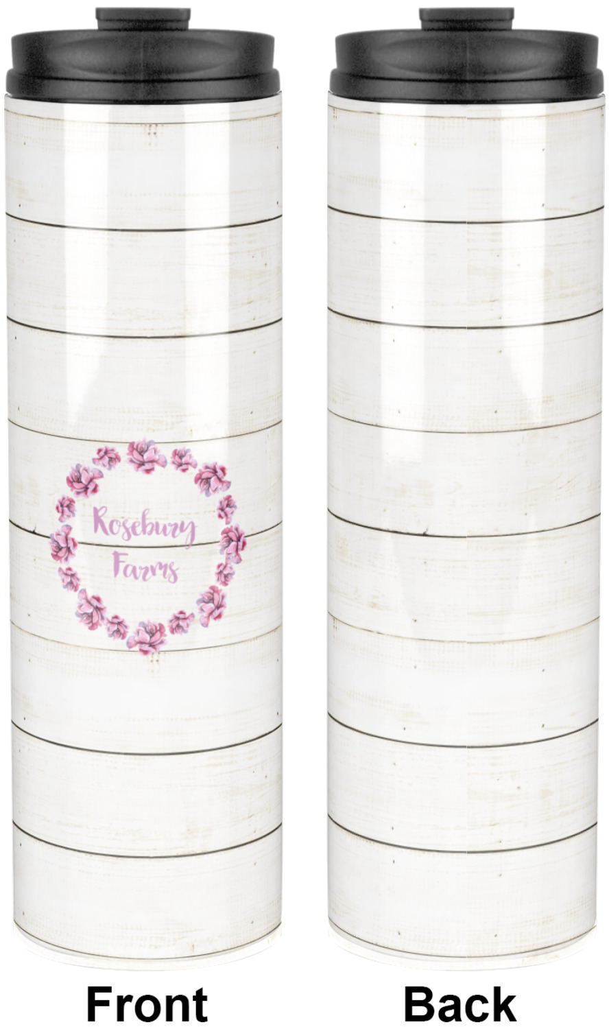 Sip your favorite drink on the go with your own custom stainless steel tumbler! Our slim cylinder shape is perfect for holding your drink in hand, in your purse, or in your backpack! This sleek and modern tumbler is a perfect gift for coffee and tea lovers keeping their drinks just the right temperature throughout the day! We offer two sizes, a 16 oz. or 20 oz., to personalize. Browse and customize or design or create your own with our online design studio!
