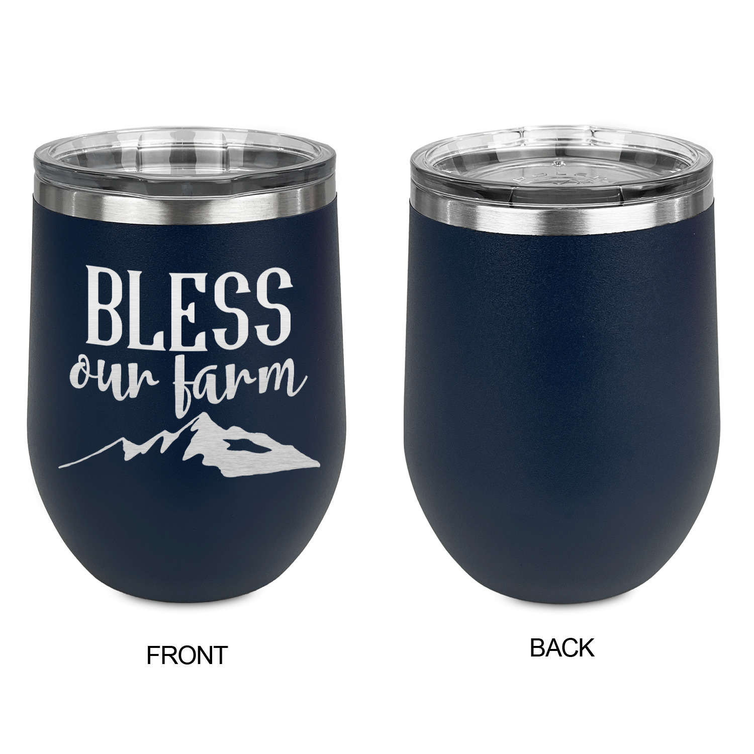Farmhouse Designs for Stemless Stainless Steel Wine Tumblers - Navy - Single-Sided