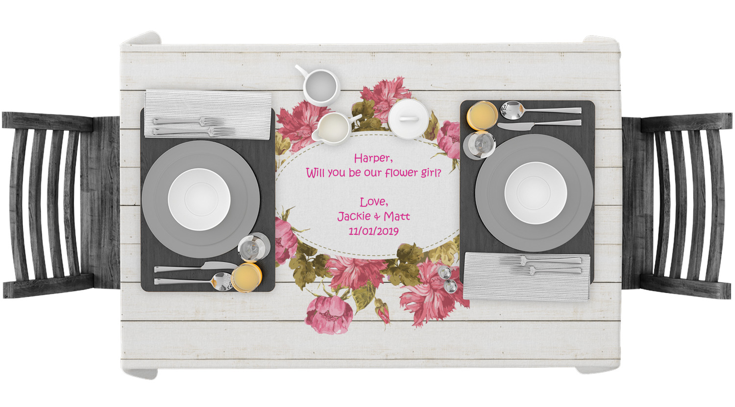 Whether you want to create a formal or informal dining room ambiance our personalized tablecloths will do just the trick!! Pull them out for the holidays, dinner parties, or use them everyday. We have a plethora of designs that cater to kids, teens, and adults; all tastes can be satisfied!!