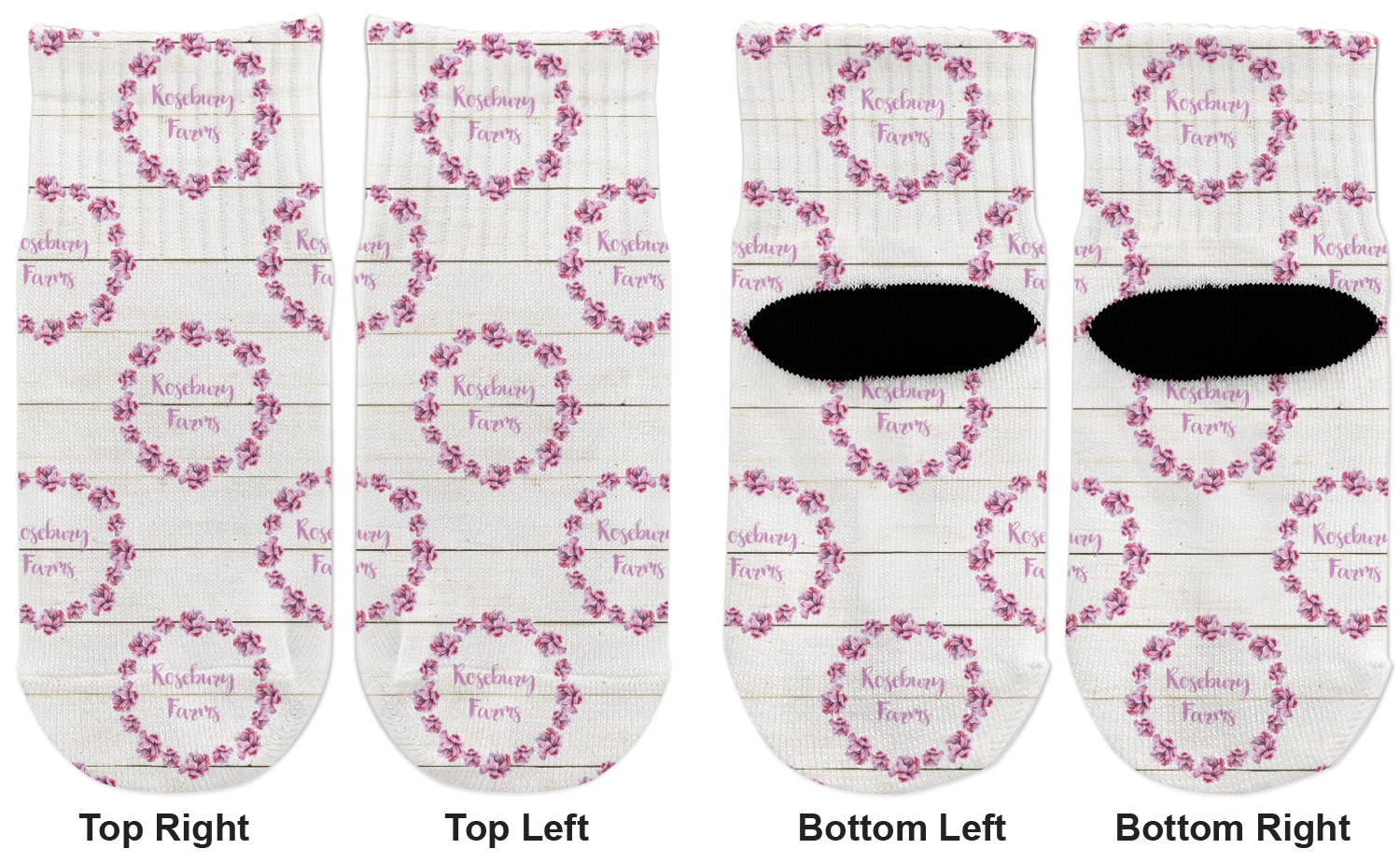The main design has a background of weathered wooden planks. A beautiful light pink flower frame is used as the focal point of this design. The pink color of the frame and the personalization inside is the perfect contrast to the light colored wood.