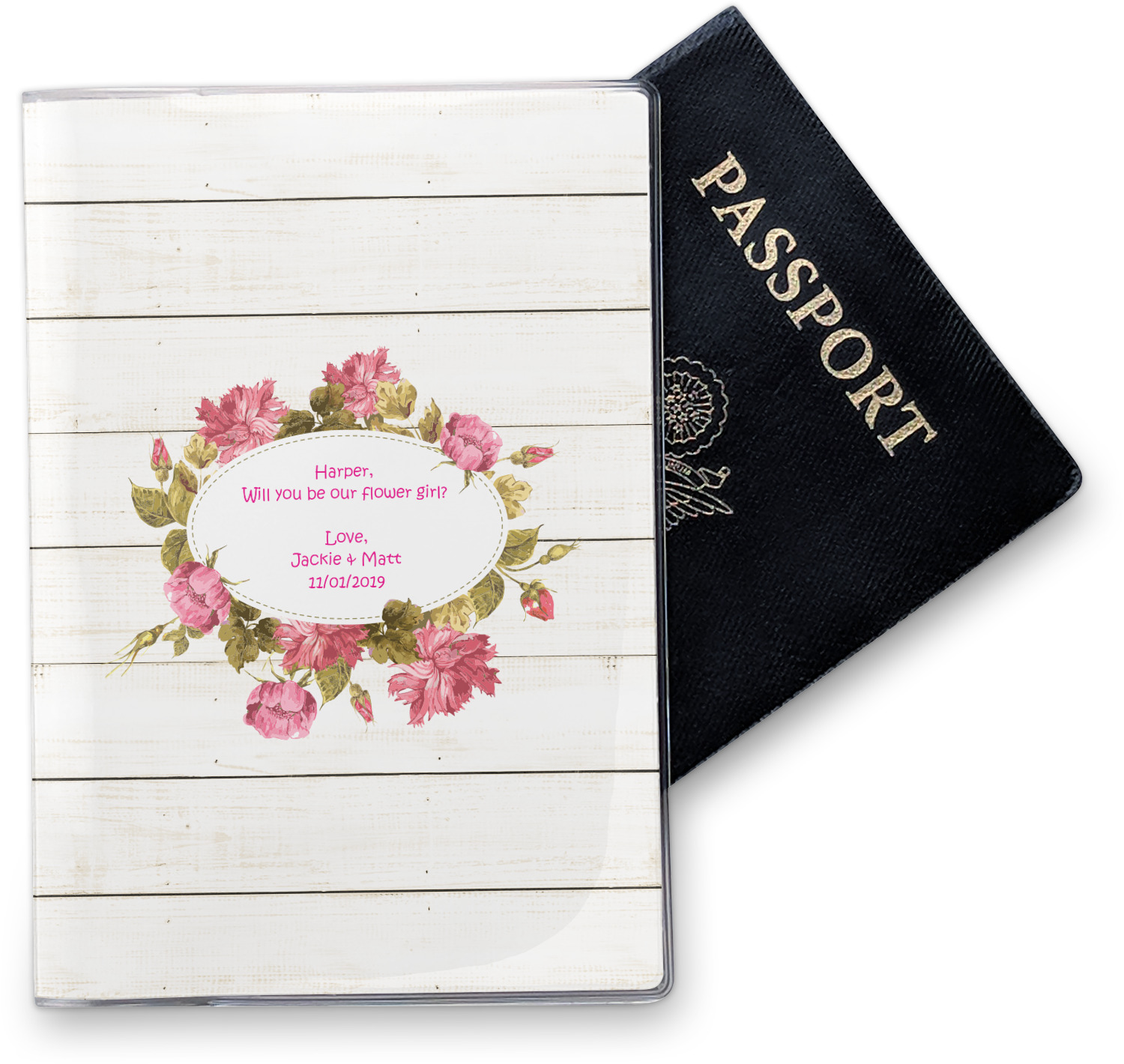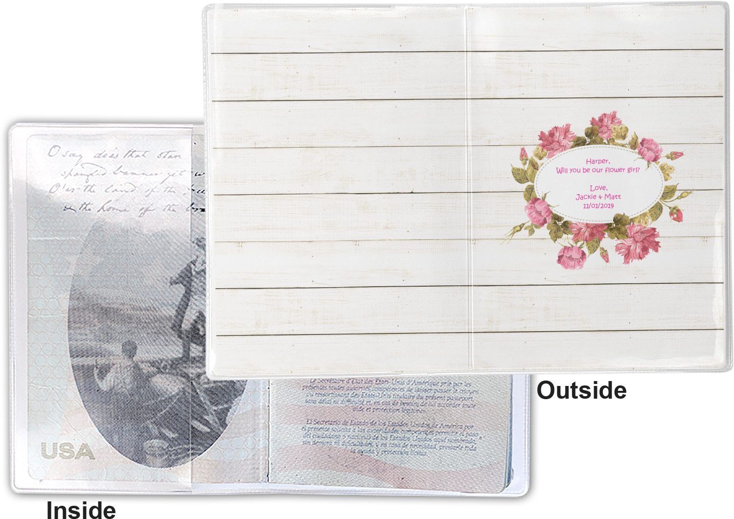 This cover is made of a sturdy clear vinyl with a personalized vinyl insert inside. There is a large and a small pocket on either side to hold the covers of your passport easily and firmly. The passport holder is approximately 7.5" x 5.25", the perfect size to snugly fit your passport. This slim cover is the perfect way to protect your passport without being one more bulky item you have to carry.
