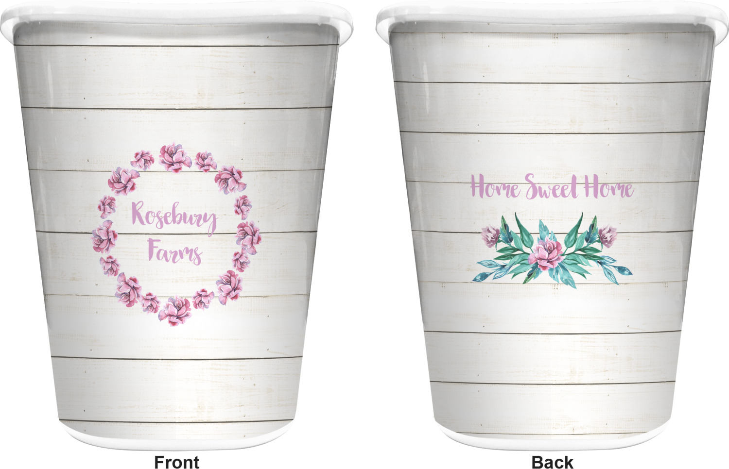 You can choose to purchase these decorative wastebaskets in either a white or a black color that will show on the base and the upper rim. Your customization is printed on a high-gloss, fine-quality vinyl adhesive, and you can choose to either have this adhesive applied to one side only or to both sides. As such, this plastic wastebasket can be single-sided or double-sided, depending on your creative vision. Your customization is printed using durable inks, making the design waterproof and resistant to fading over time.