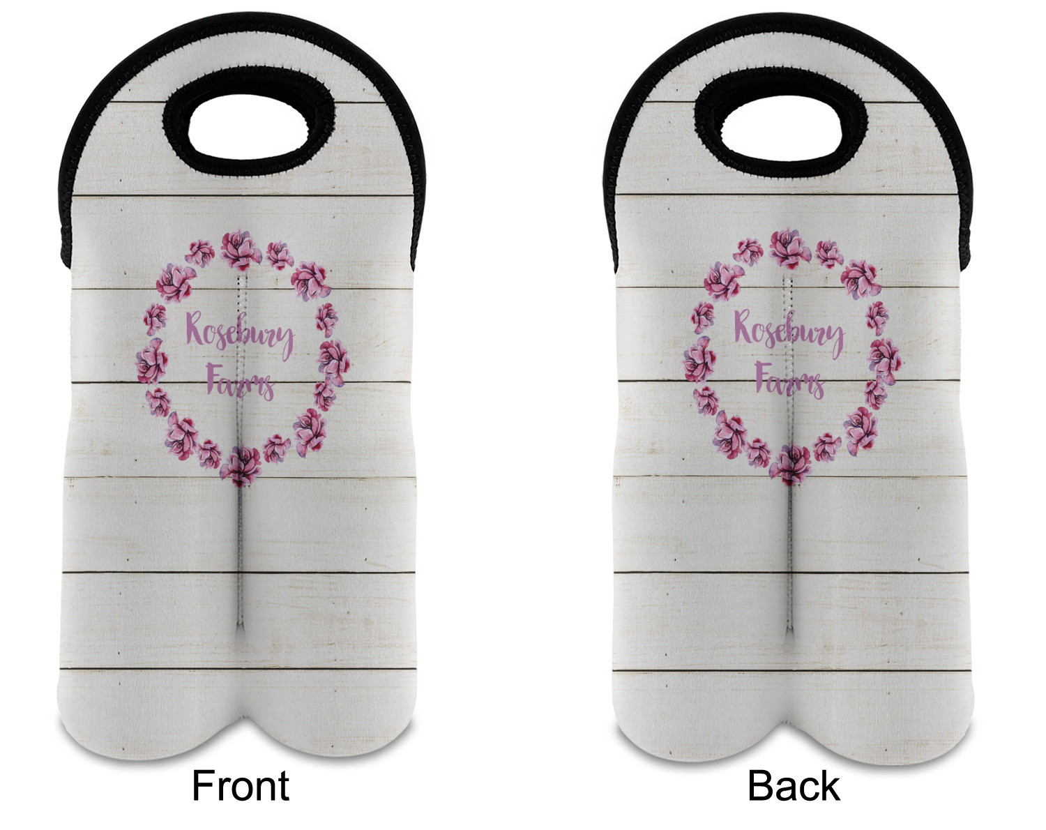 These tote bags are insulated to keep the bottles cold and have a stitched separation down the middle and double handles to keep the two bottles safe and secure during travels.