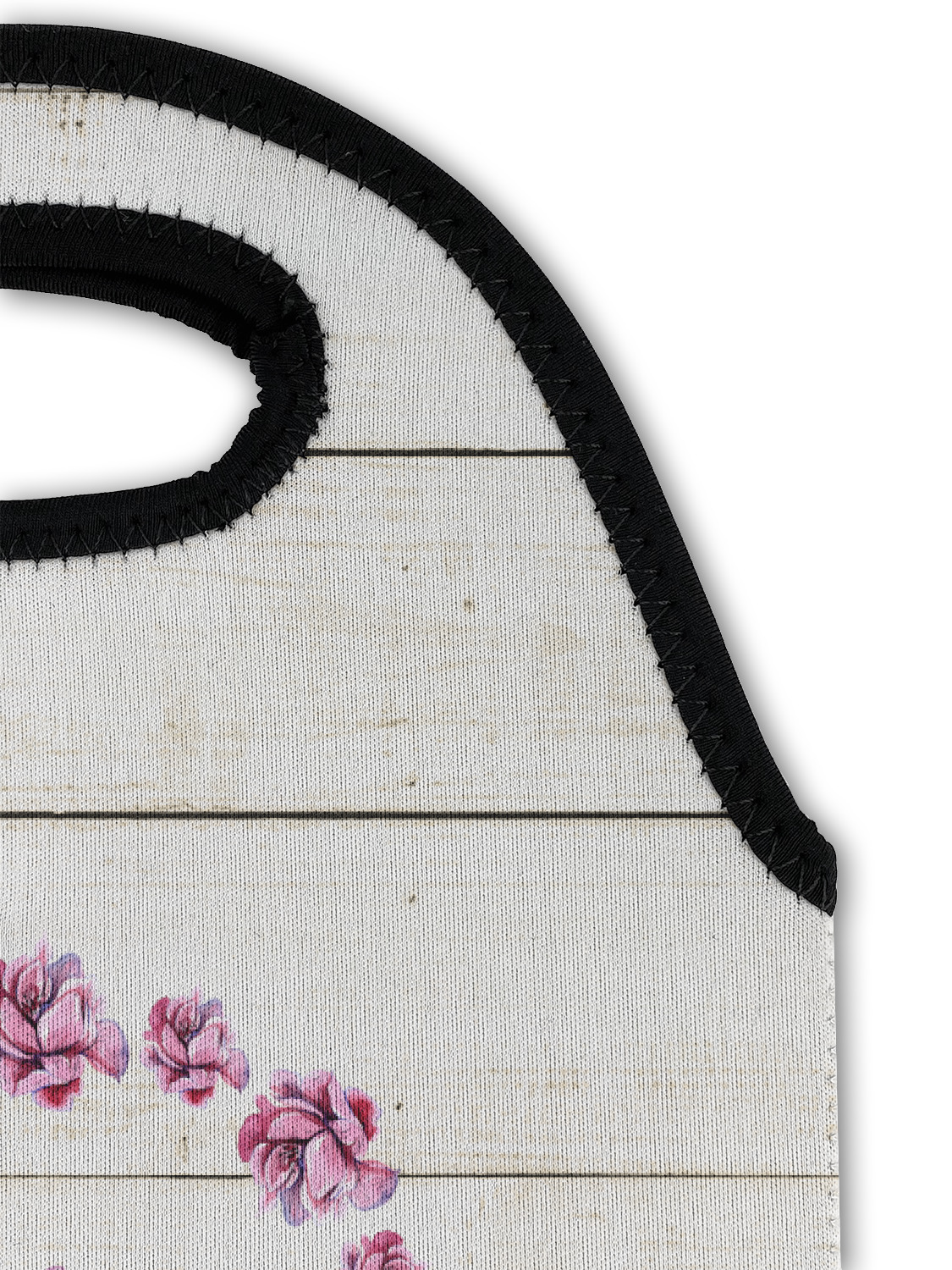 The coordinating design has the same wooden background with a flower illustration as the main graphic. This design is the perfect feminine touch to any accessory.