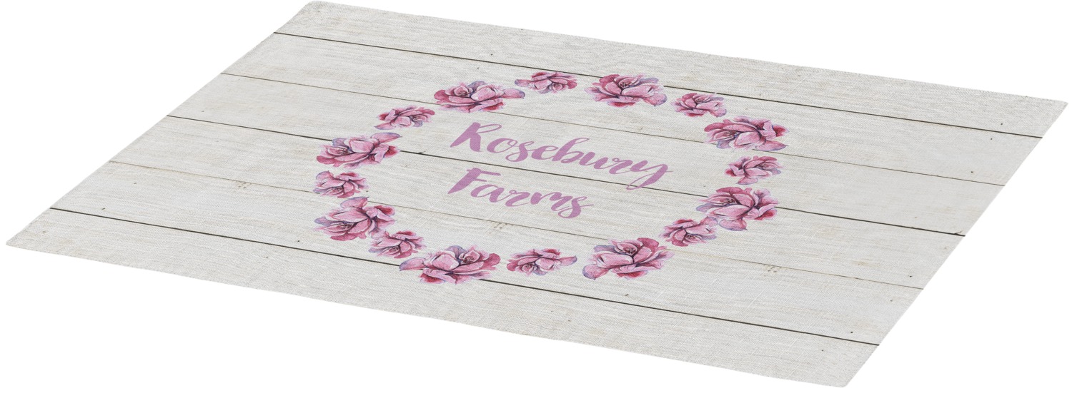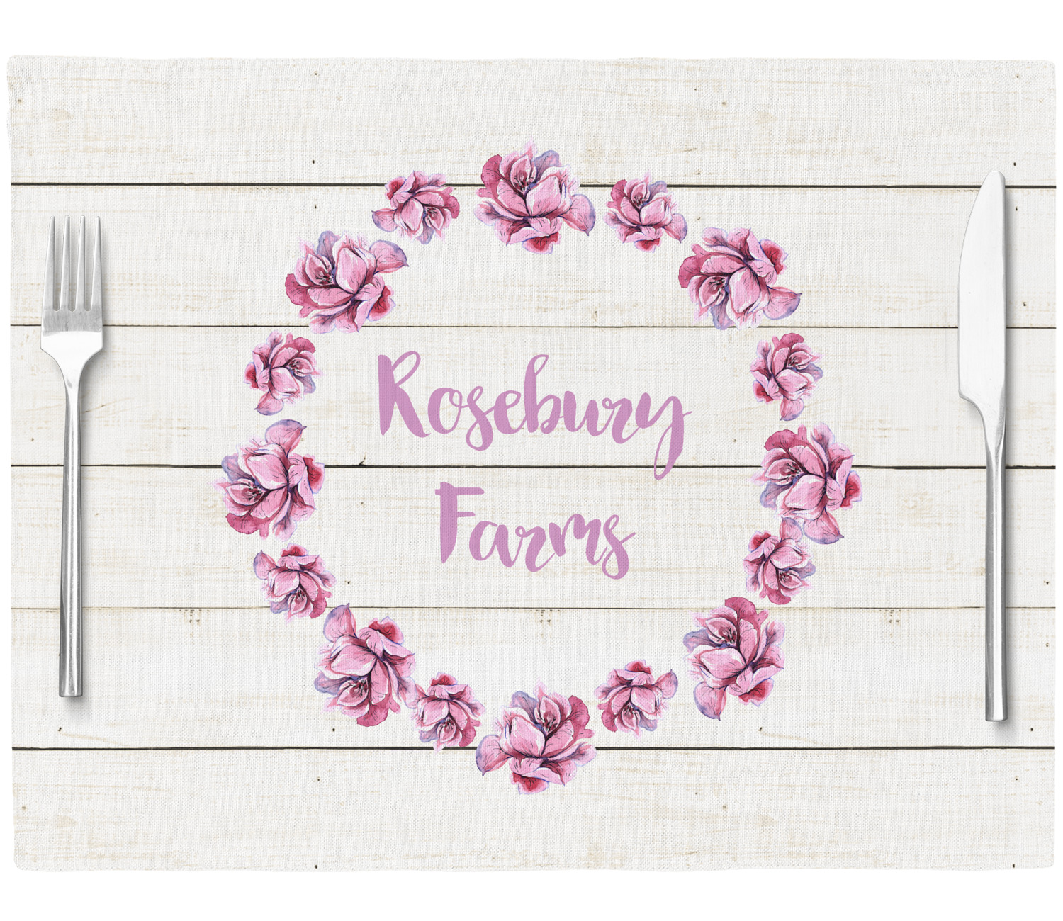 Each of our table mats are a poly twill material with woven burlap detailing. This creates a soft, quality placemat for us to fully print your personalized design across. The woven twill also adds a wrinkle-free surface to set your table! Each customizable placemat is a rectangle shape measuring at approximately 13 x 18 and printed here in the USA.